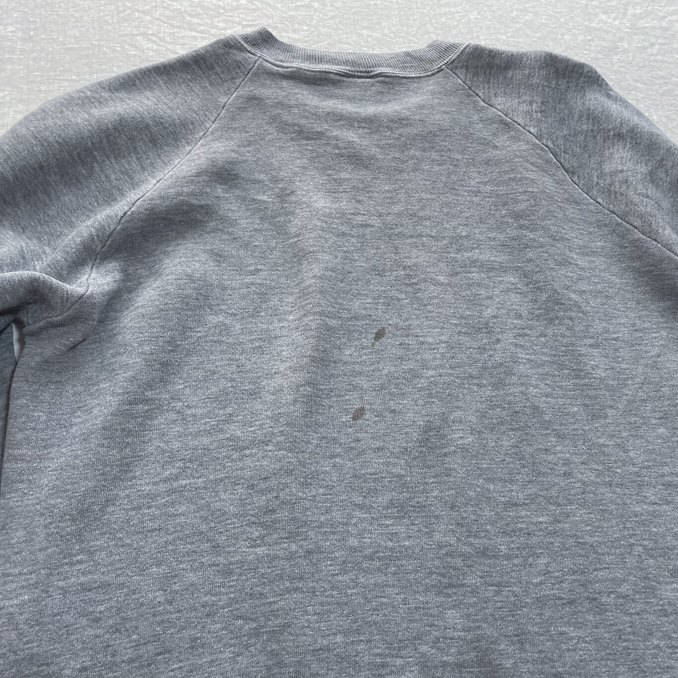 【Condition】左袖付近にダメージ、汚れ、背面に汚れ、右下部に小キズあり。プリントされている周りが色あせています。ヴィンテージの雰囲気がある一枚です。