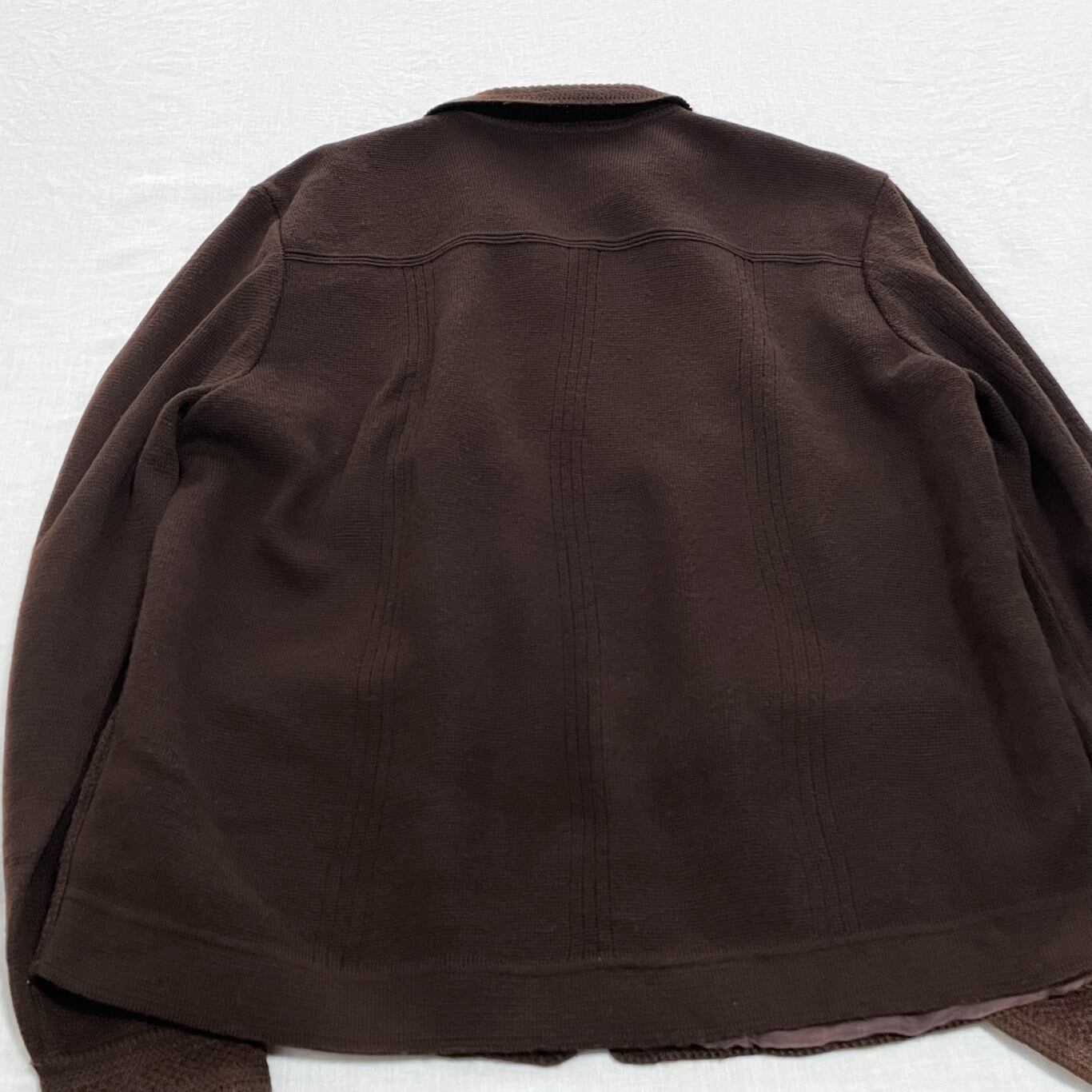 70s ハラコレザー パッチワーク ニット 切り替え ジップジャケット 42 丸襟 ブルゾン アメカジ
