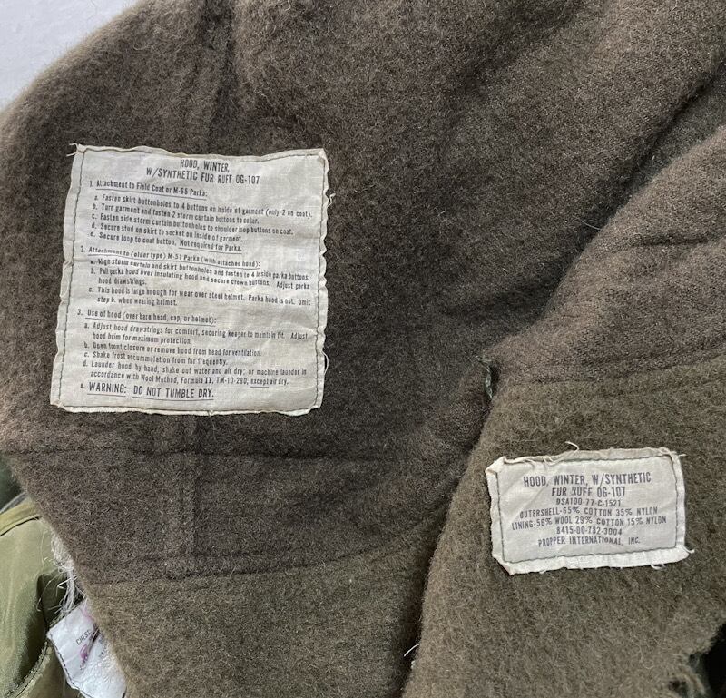 米軍の名品、M65フィールドパーカーのフルセットになります。