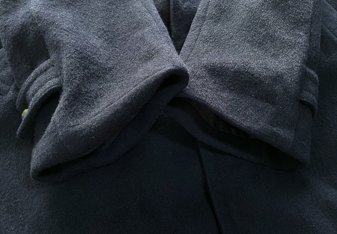 ネイビーのボディー、アルパカとウールの混紡になりやわらかな素材になります。