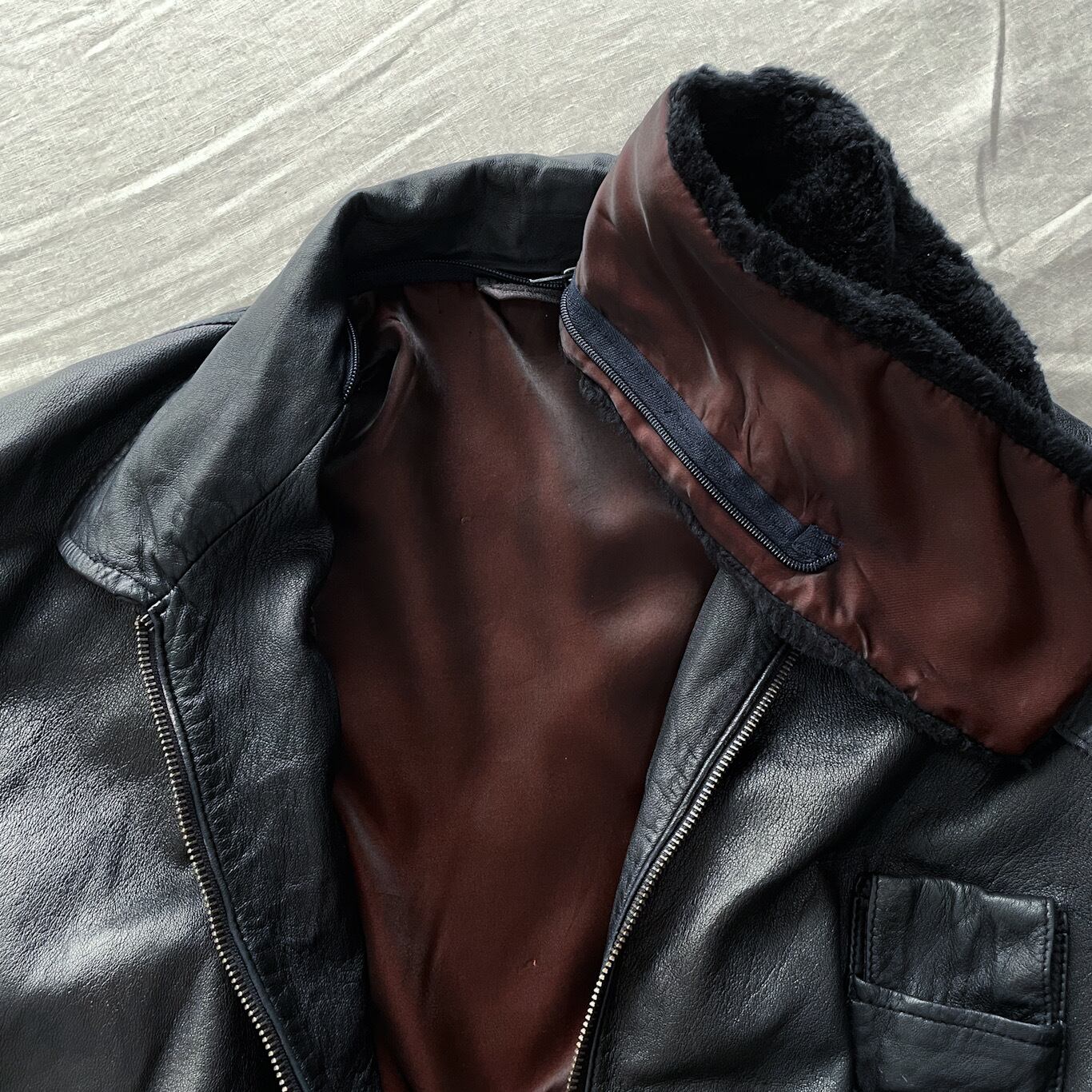 良品 フランス軍 ボア付き パイロット レザー フライトジャケット 52 ブラック 空軍