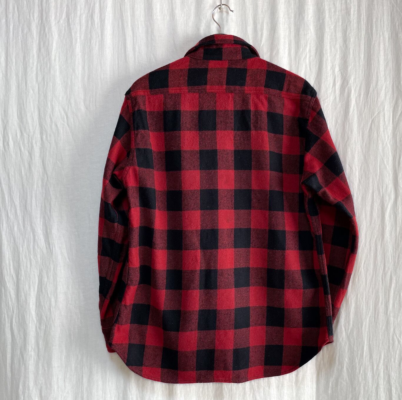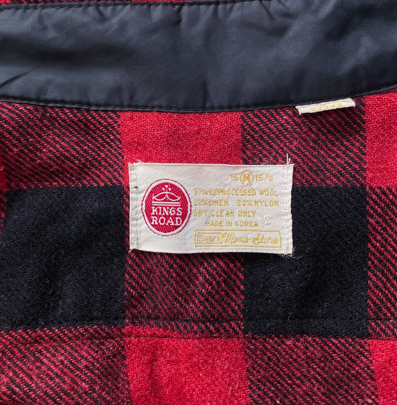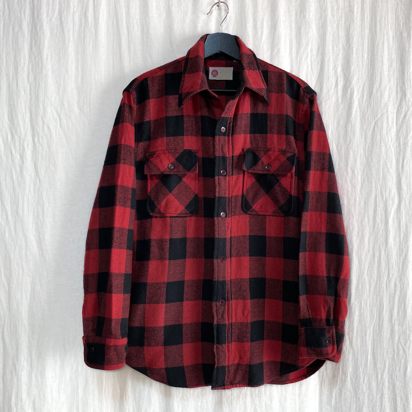 70s SEARS シアーズ ブロック バッファローチェック ウール x リネン シャツ M