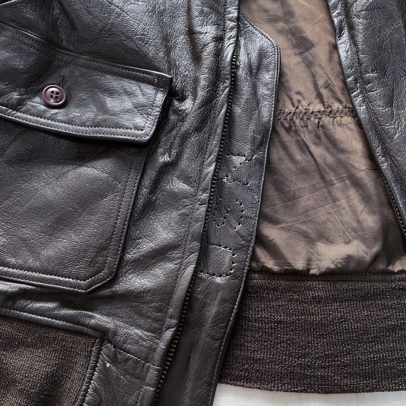 【Condition】 ややレザー特有のスレキズ、リブにダメージあり。レザーの状態はまずまず良好です。