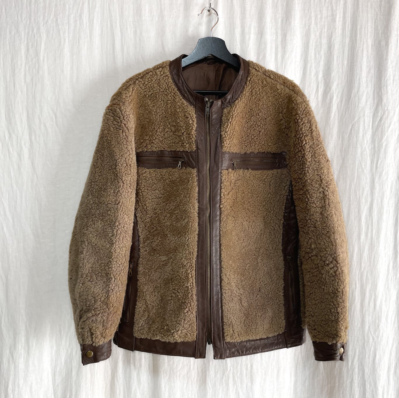 貴重 50s ユーロヴィンテージ 西ドイツ製 ノーカラー ムートンボア グリズリージャケット