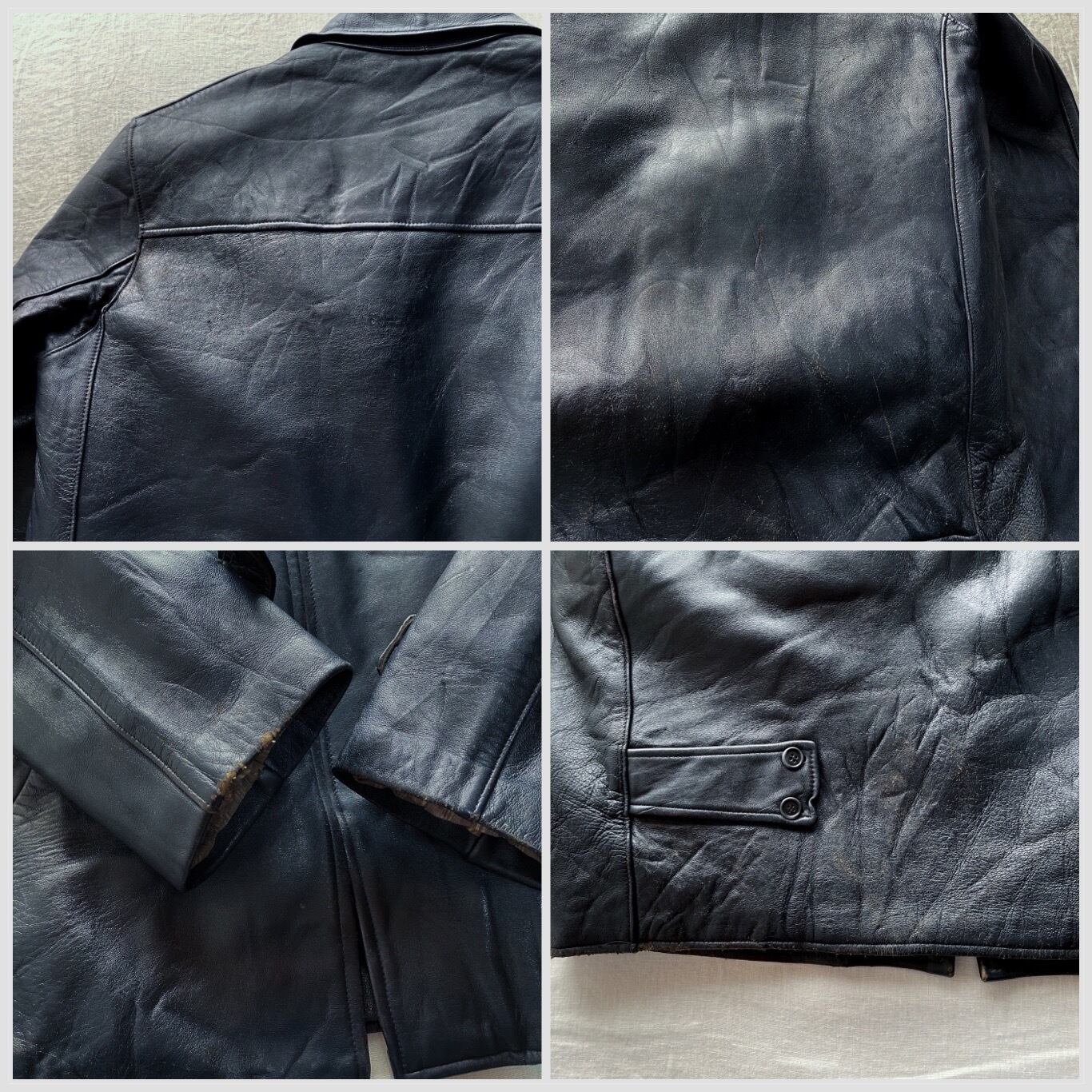 【Condition】 レザー特有のスレキズ、右袖にキズ、背面に補修跡あり。大きなダメージは見受けられずこれからも末永くご愛用いただけます。