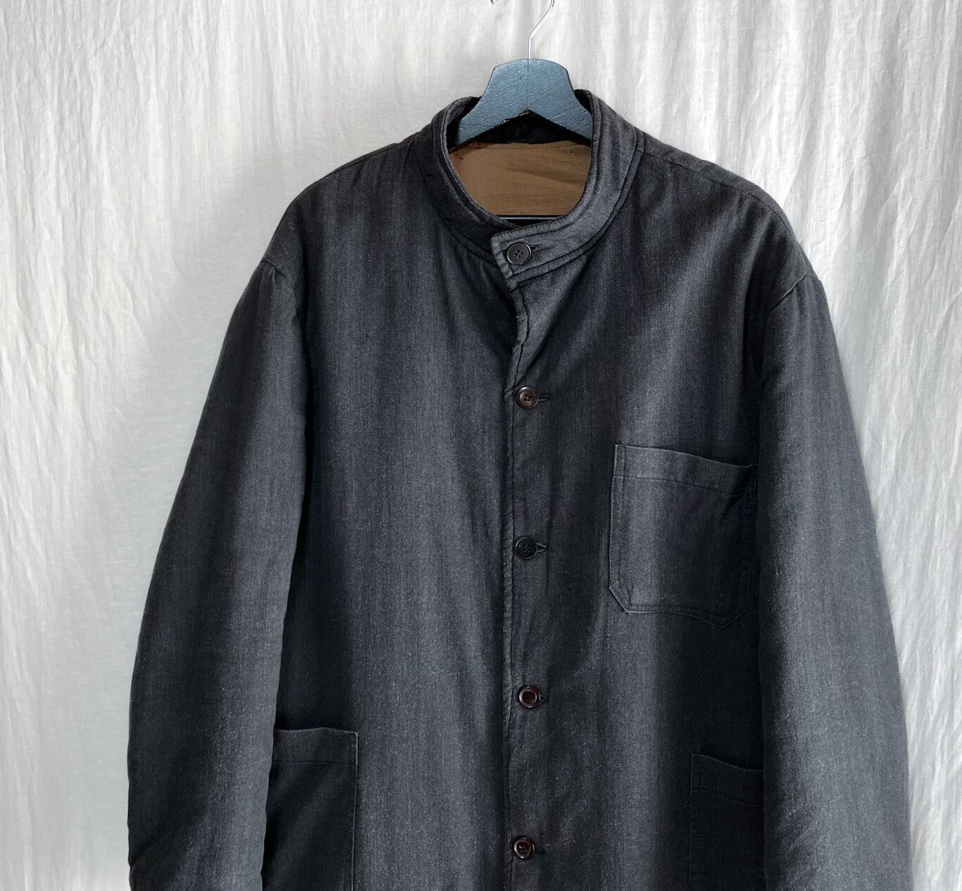 50s 60s ユーロヴィンテージ ノーカラー 中綿入り ワークジャケット グレー L〜XL相当 カバーオール