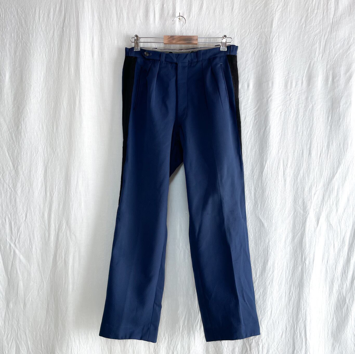 貴重 50s ユーロ ヴィンテージ サイドライン ミリタリー スラックスパンツ W30 ネイビーブルー サスペンダー