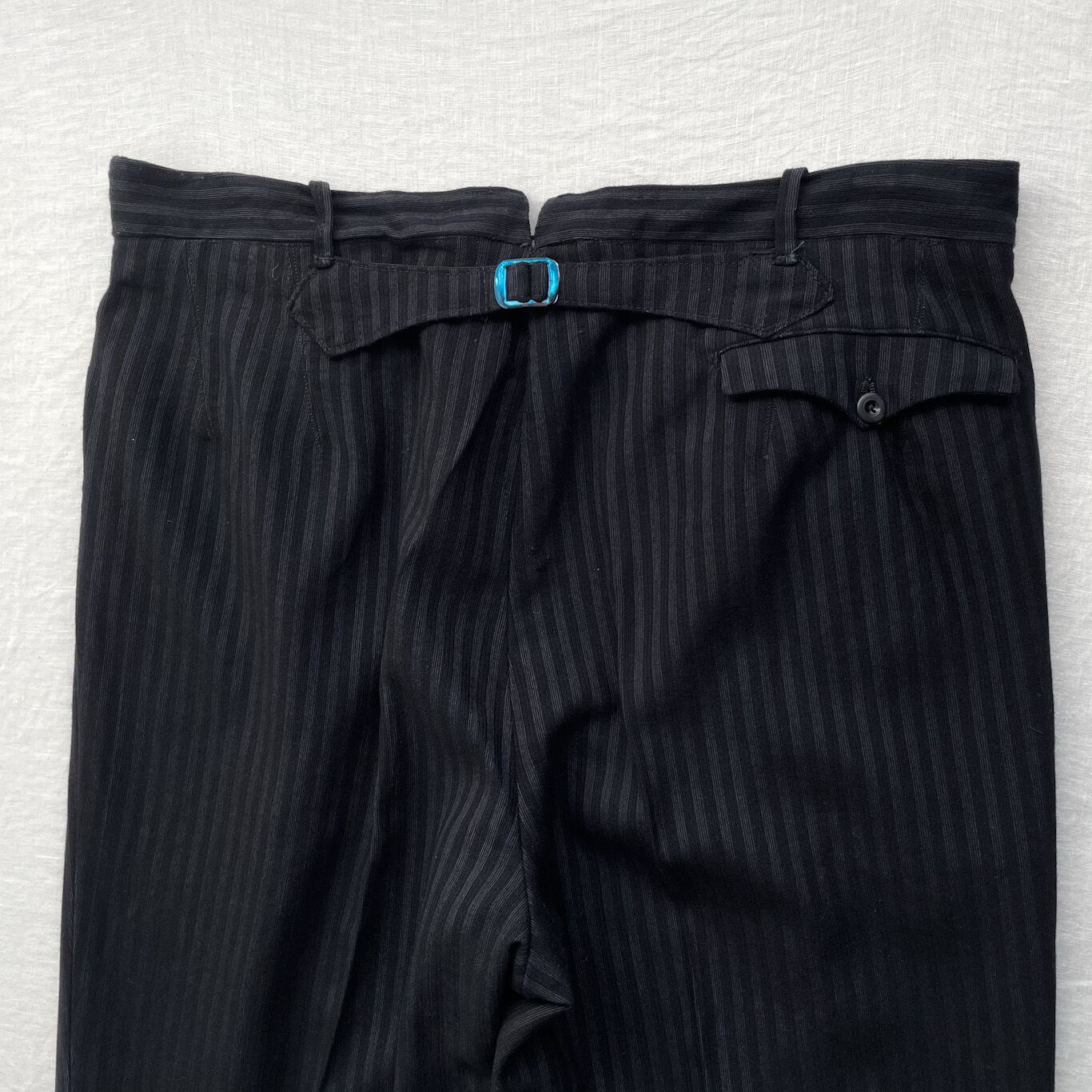 貴重 30s 40s ユーロ ヴィンテージ シンチバック ブラックストライプ スラックスパンツ W35 サスペンダー
