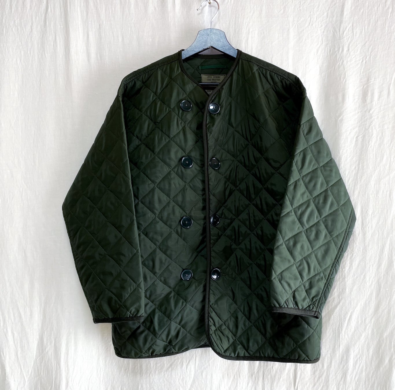 落ち着いたカーキのボディー、キルティングに薄く中綿が入りサラッと羽織れます。