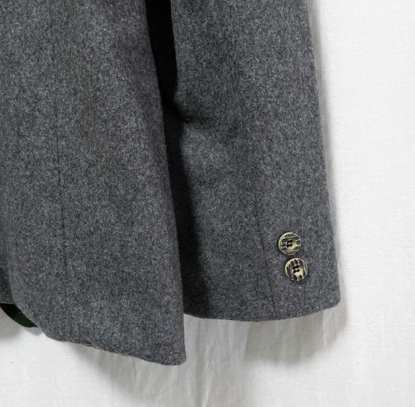 表地は上質なウール生地、ノーカラー、フロントは印象的なボタンが付きます。