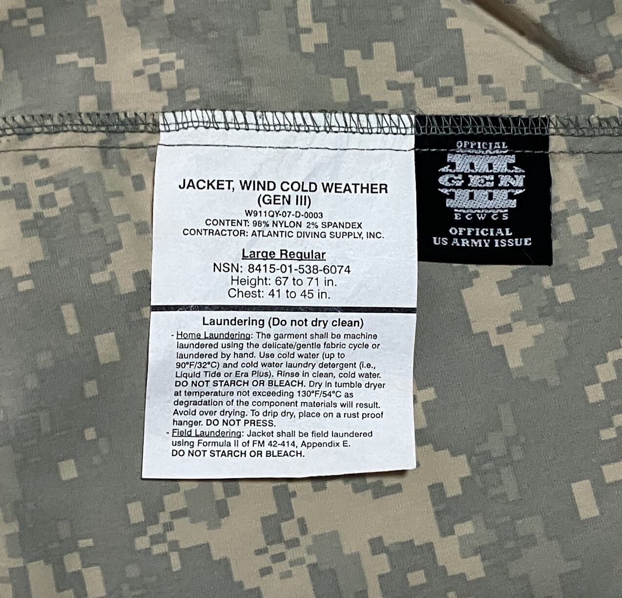 美品 米軍 実物 ECWCS LEVEL4 GEN3 ソフトシェル ジャケット L-R デジカモ