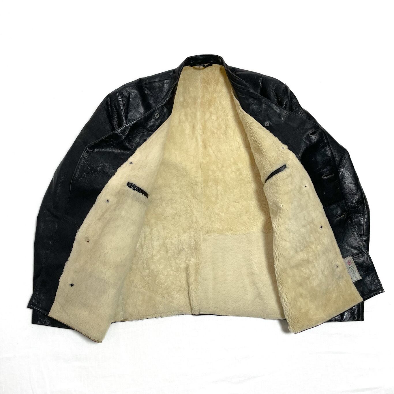 40s ユーロ ビンテージ ダブルブレスト 豪華 裏地 ムートンボア レザー カーコート L相当 針刺し シンチバックライダース
