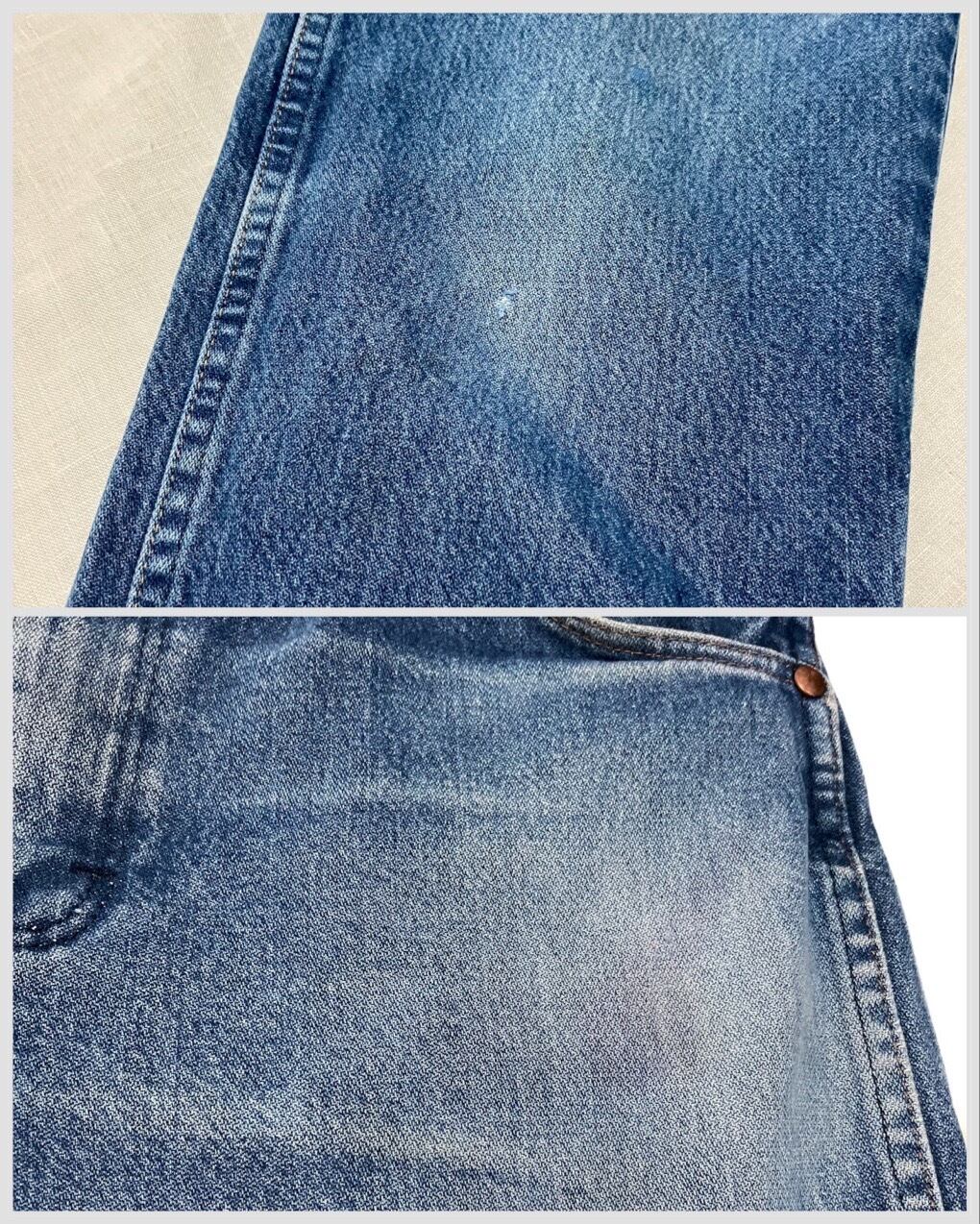 【Condition】左ポケット下に色褪せあり。右太腿部ヤブレあり。両裾にダメージがありますが雰囲気のあるダメージでまだまだご愛用いただけます。