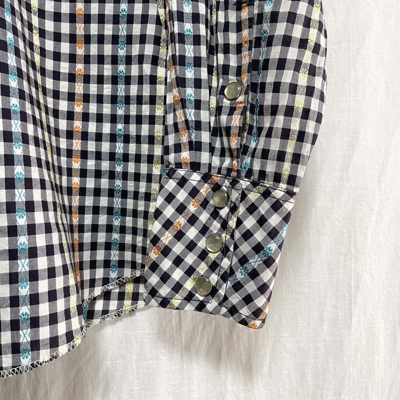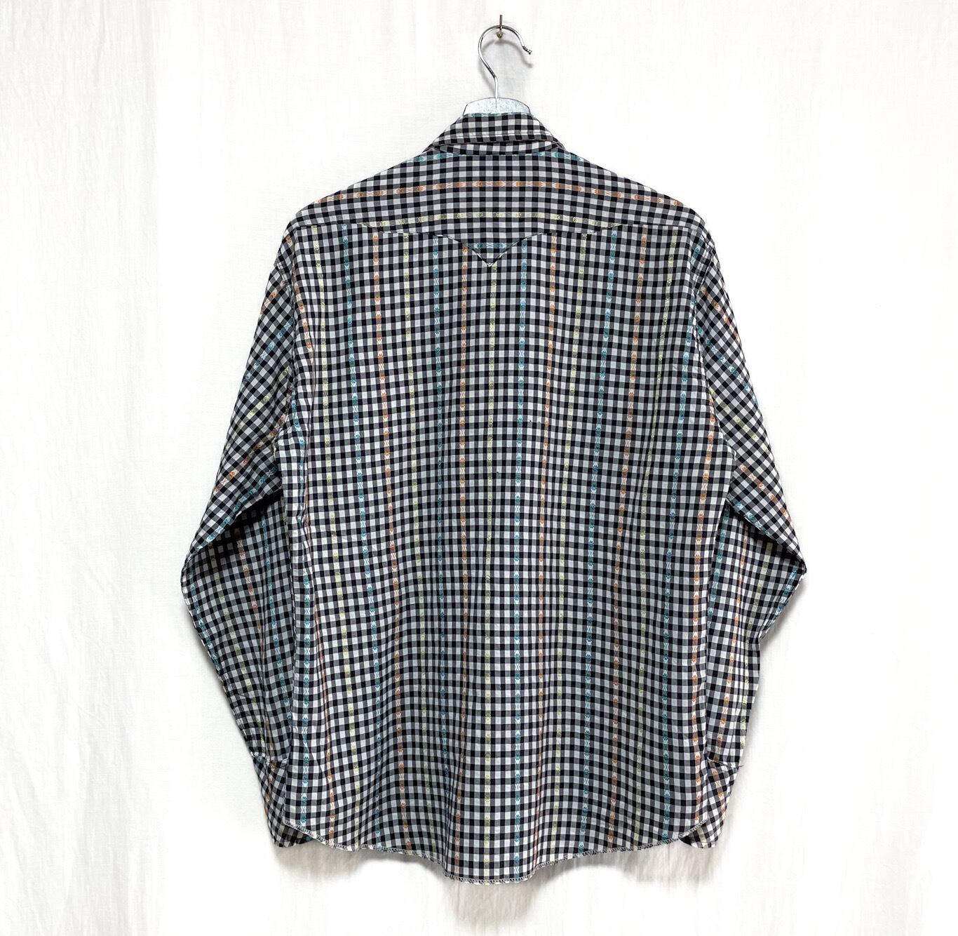 50s 60s Westmount 刺繍 ストライプ ギンガムチェック ウエスタンシャツ 15 1/2 長袖
