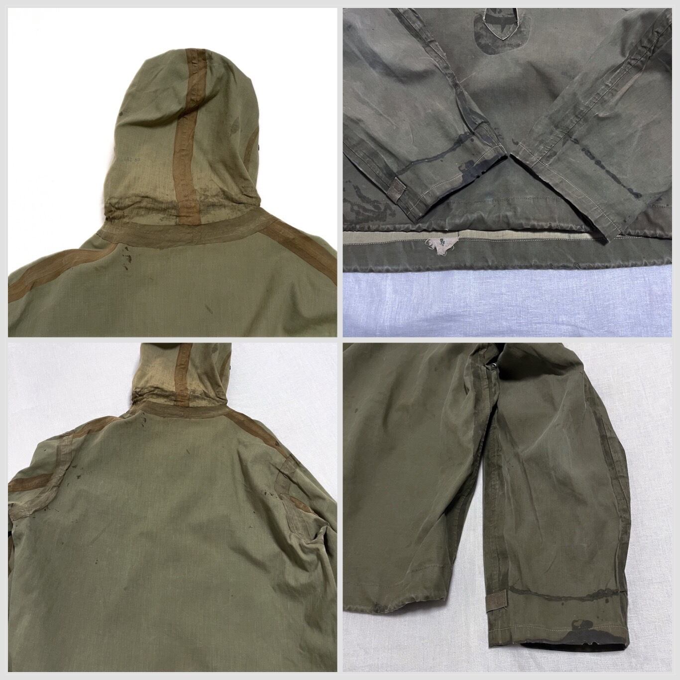 【Condition】各所に汚れ、フードドローコード出口にダメージ、襟元コードと左袖口アジャスターに変更、スレキズが裾にございます。着用感は強めになりますが非常に良い雰囲気の1着です。
