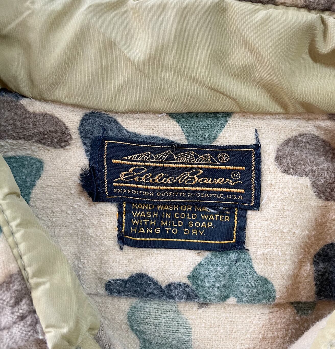 80s Eddie Bauer エディーバウアー ダックハンターカモ 長袖シャツ シャモアクロス 黒タグ アメカジ ネルシャツ