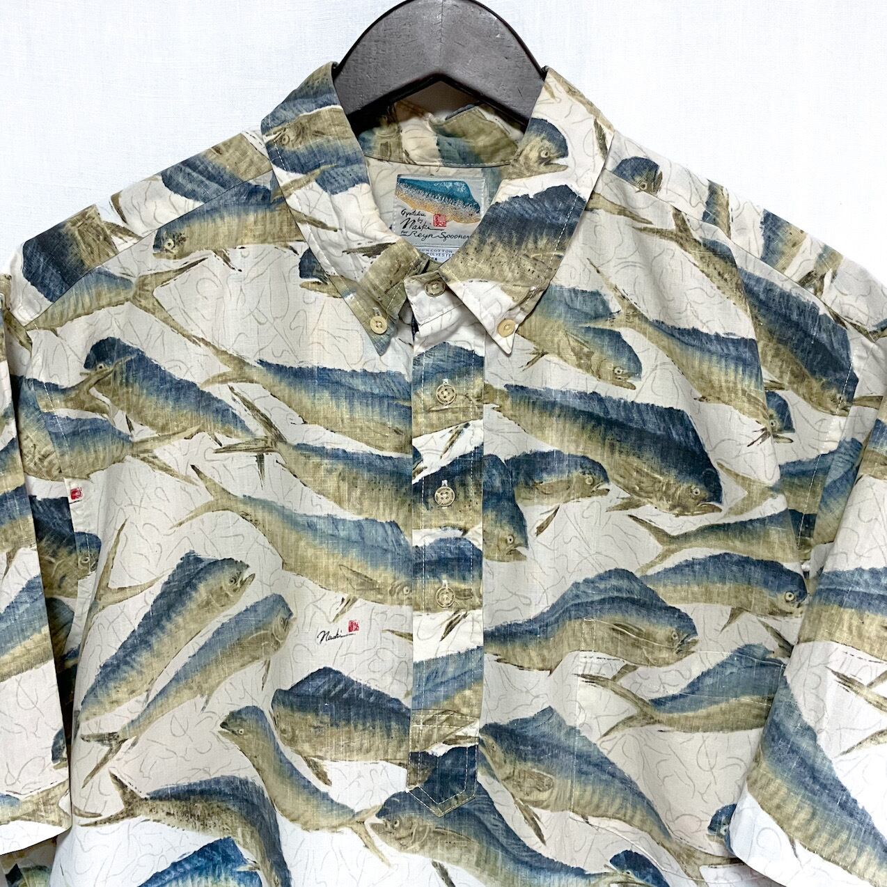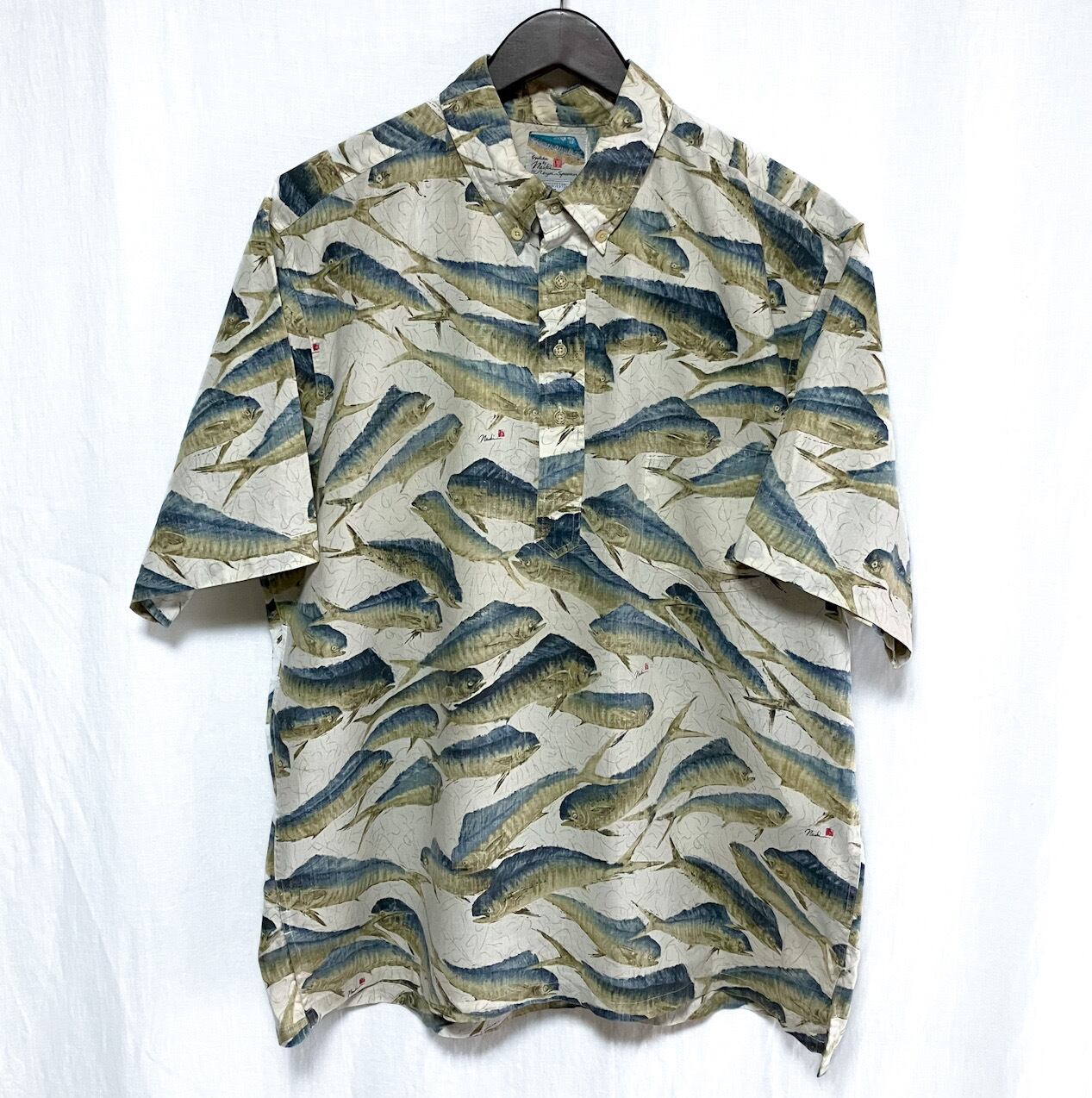 良品 90s REYN SPOONER シイラ柄 フィッシュアロハシャツ レインスプーナー アメカジ プルオーバー 半袖シャツ XL