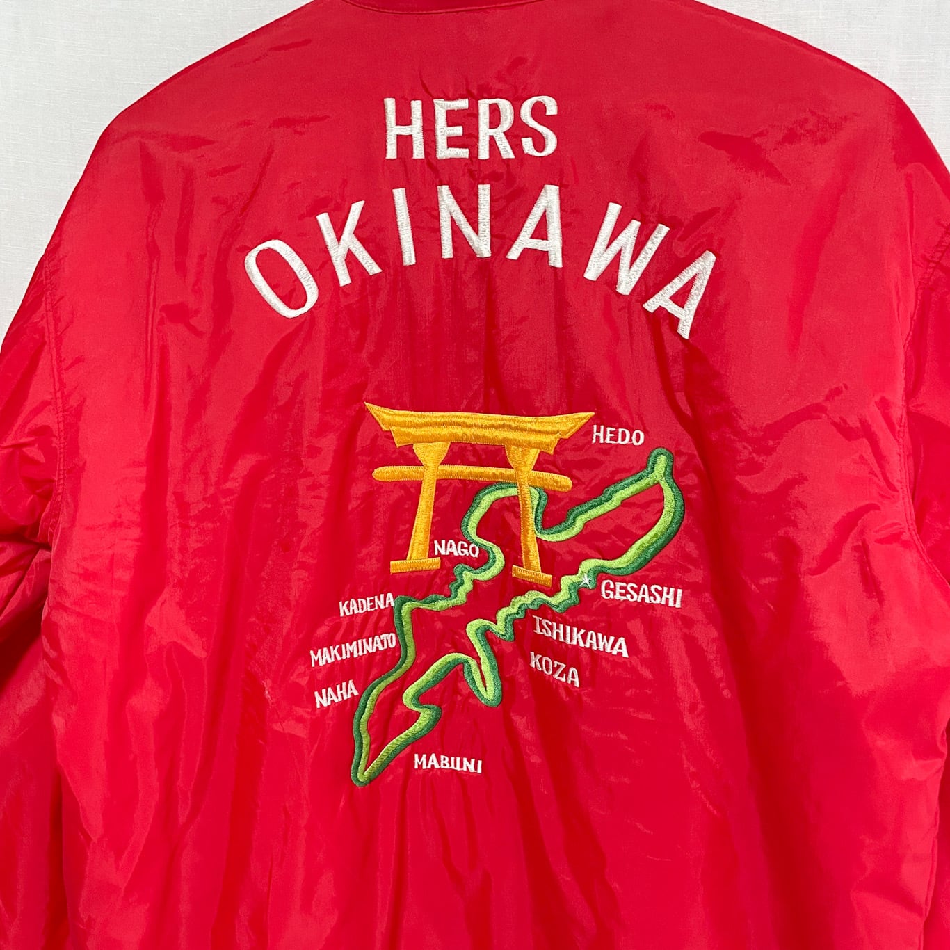 70s Toguchi OKINAWA ナイロン スーベニアジャケット 沖縄 刺繍 レッド L
