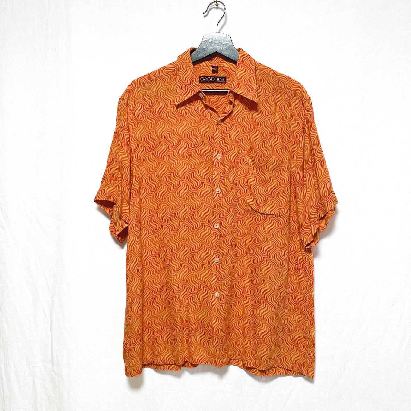 良品 ユーロ ヴィンテージ 曲線 総柄 レーヨン 半袖 シャツ M アロハシャツ フランス フレンチ