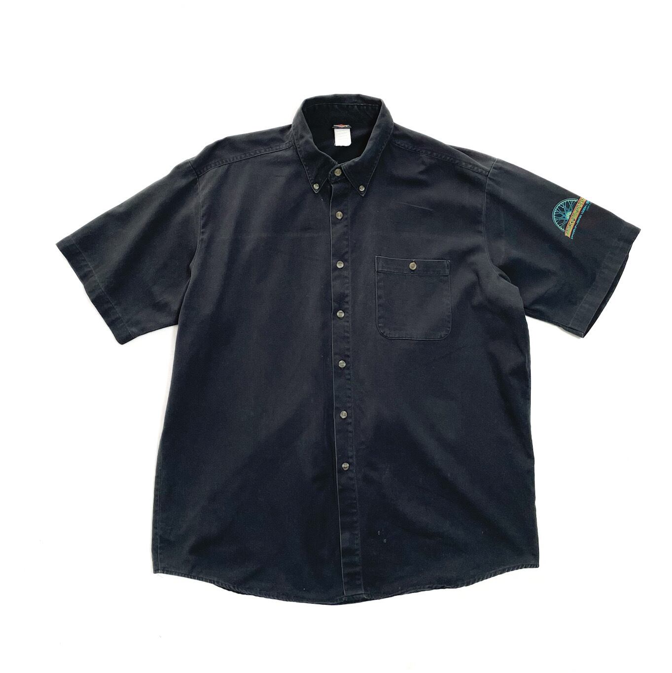 90s ハーレーダビットソン プリント 半袖シャツ XL ブラック バイク