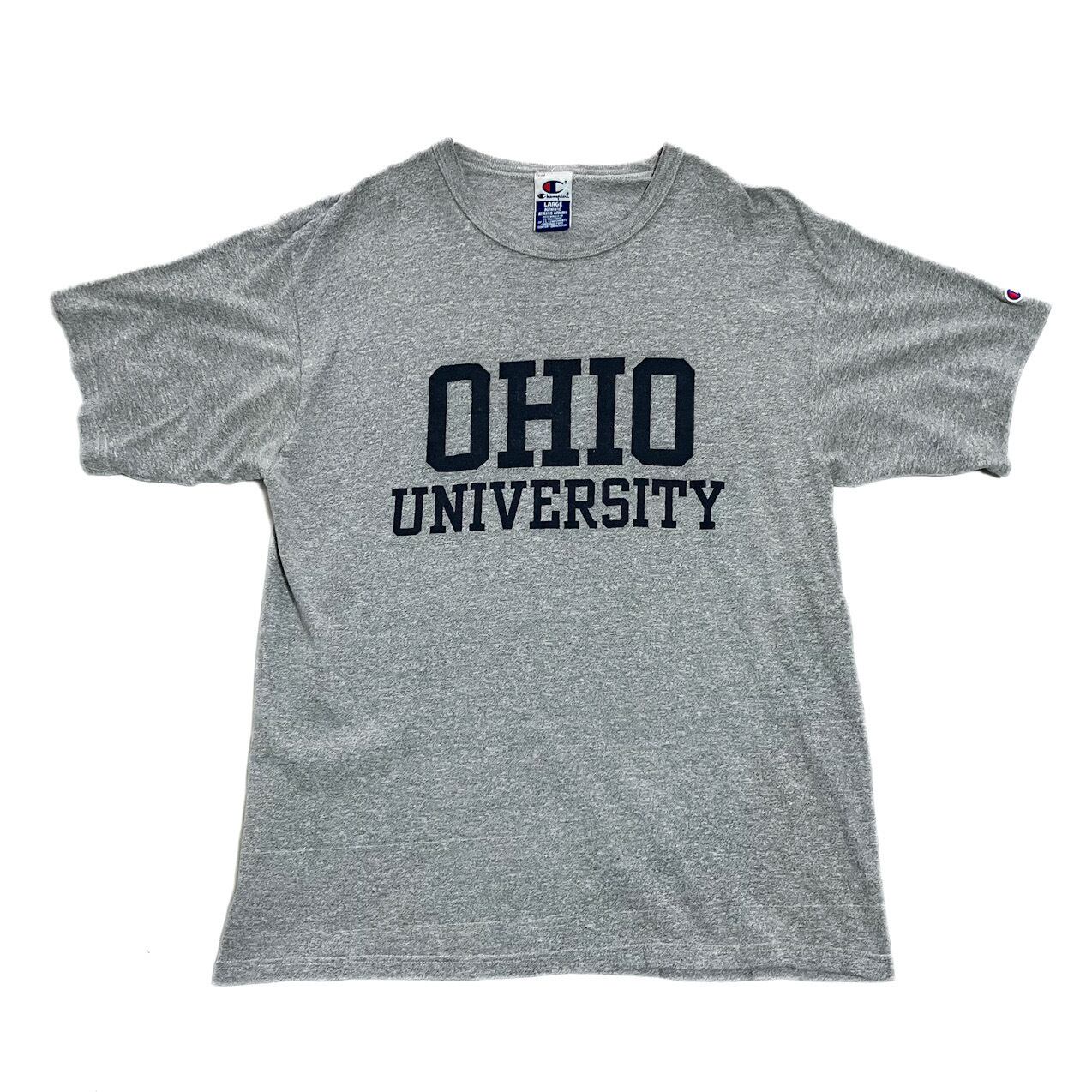 90s Champion 半袖Tシャツ 胸プリント カレッジTシャツ 霜降りグレー オハイオ ユニバーシティ チャンピオン L