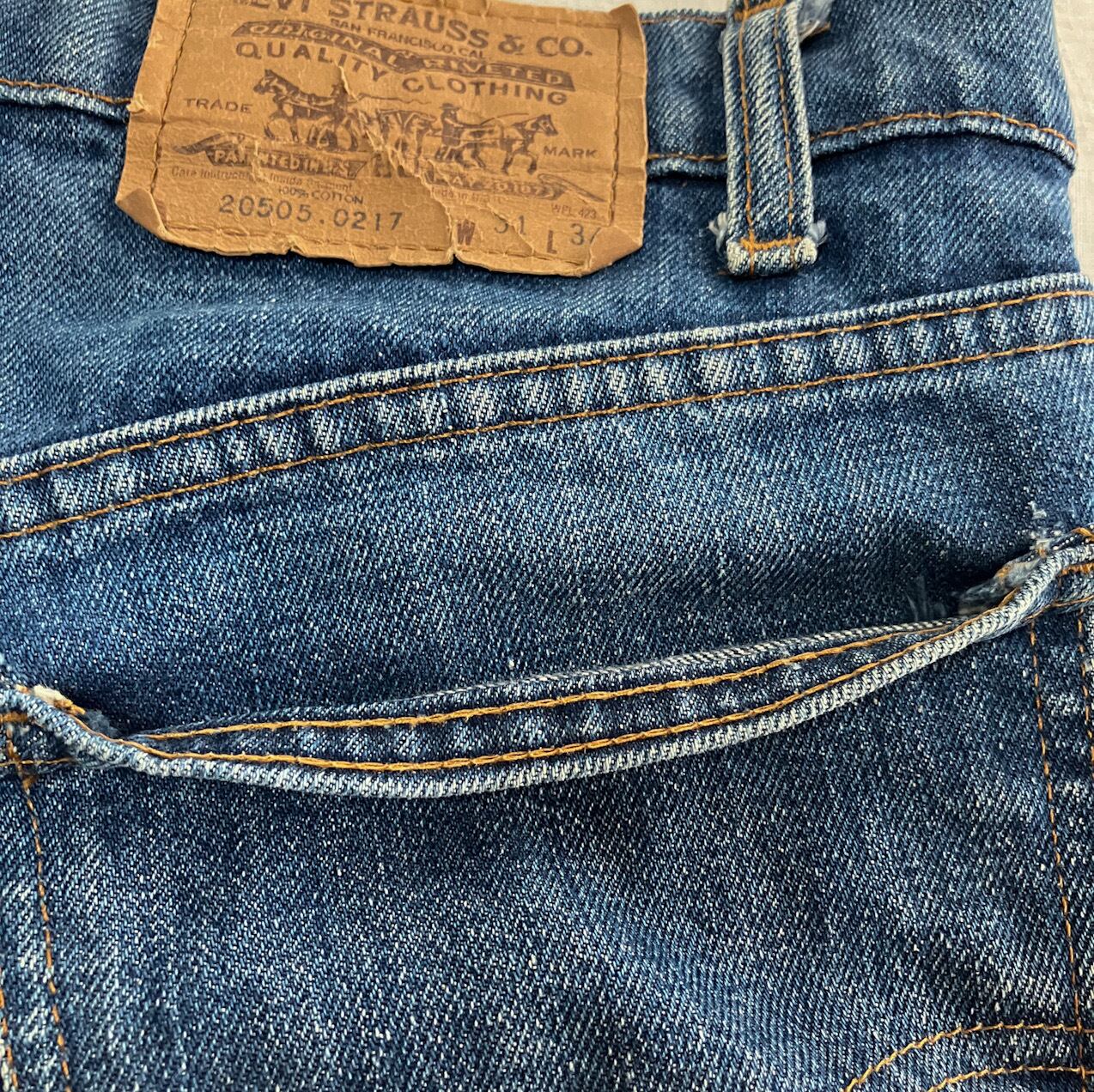 雰囲気◎ 80s vintage Levi's 505 66後期 デニムパンツ ヴィンテージ 8刻印 チェーンステッチ オレンジタブ USA製 W31×L34 ジーンズ Gパン
