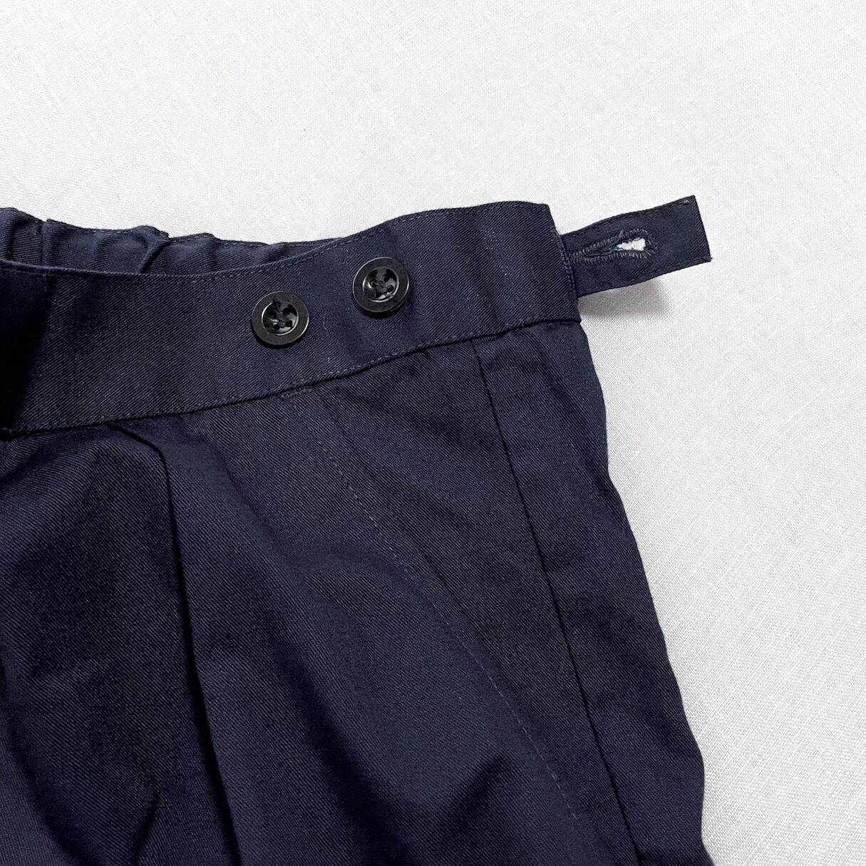 ウエストサイドはアジャスターが付きますので最小72cmまで絞ることが可能です。