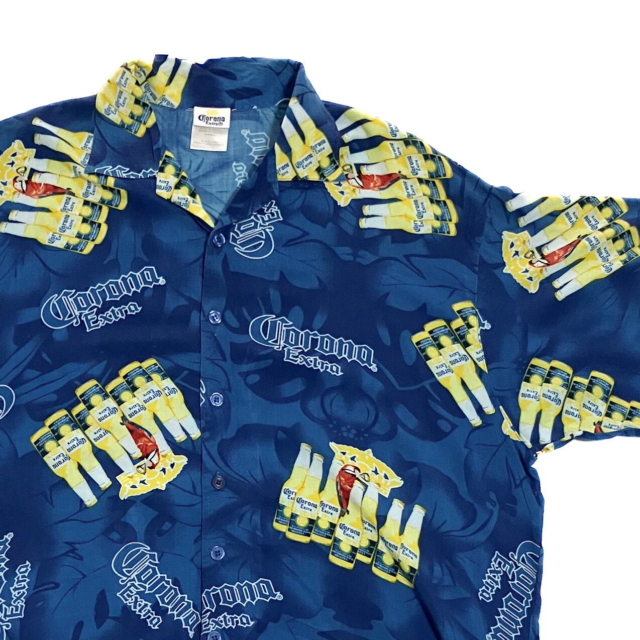CORONA EXTRA 半袖 プリント シャツ コロナ エキストラ アロハシャツ レーヨン100% メンズ ロゴプリント アメカジ XXL