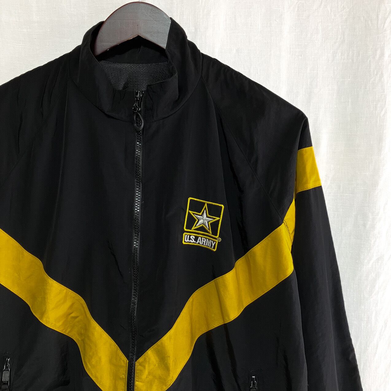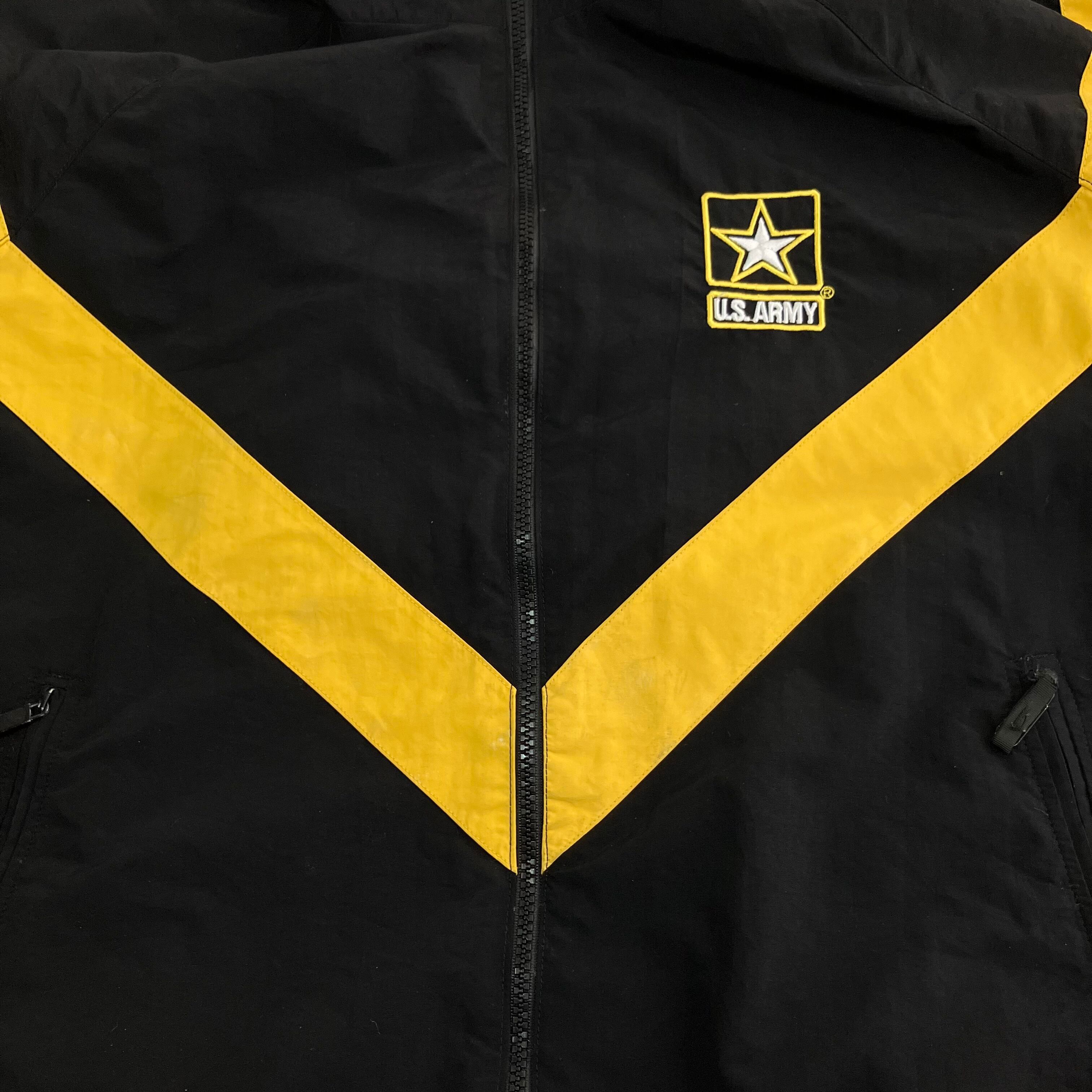 U.S.ARMY 米軍 実用 ナイロン トレーニングジャケット M-R 裏地メッシュ ブラック x イエロー ブルゾン