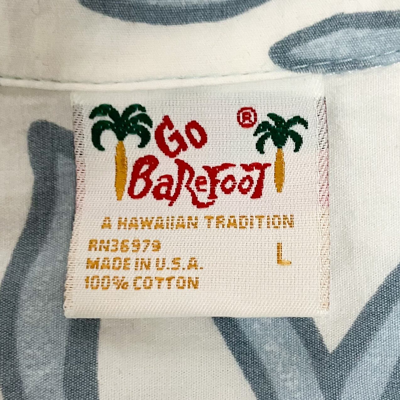 90s USA製 GO BareFoot ゴーベアフット アロハシャツ メンズ アメカジ ハワイアンシャツ ハイビスカス 花柄 ブルー L