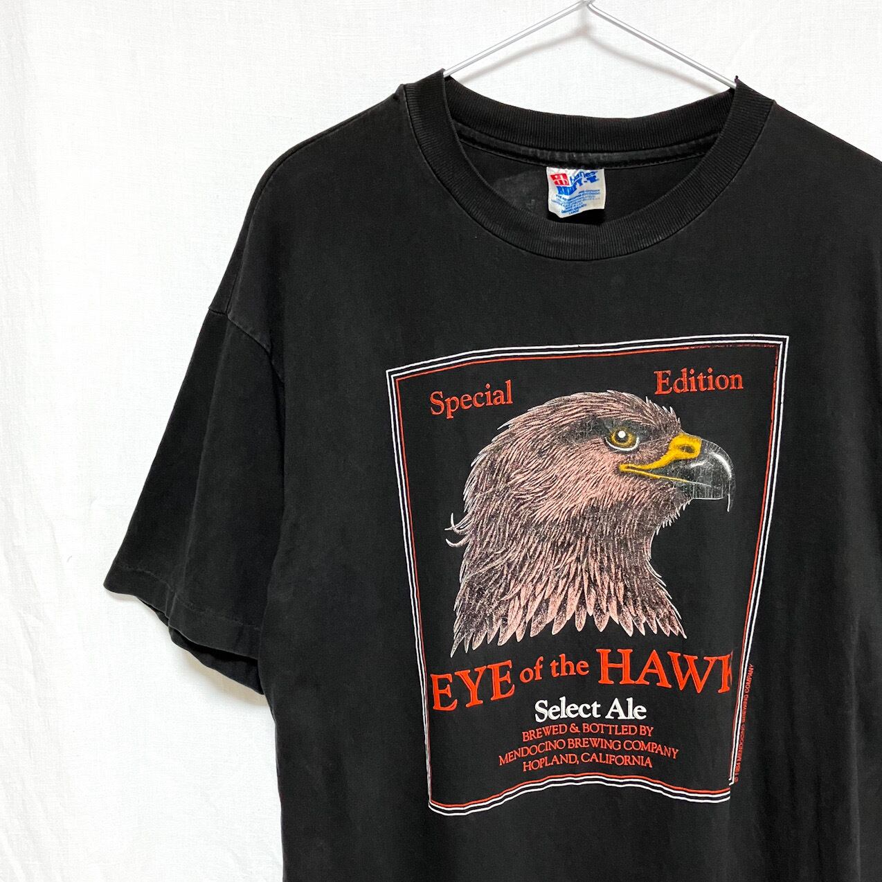 90s USA製 Hanes BEEFY-T ヘインズ 半袖 プリント Tシャツ 鷹プリント グッドデザイン 黒 L
