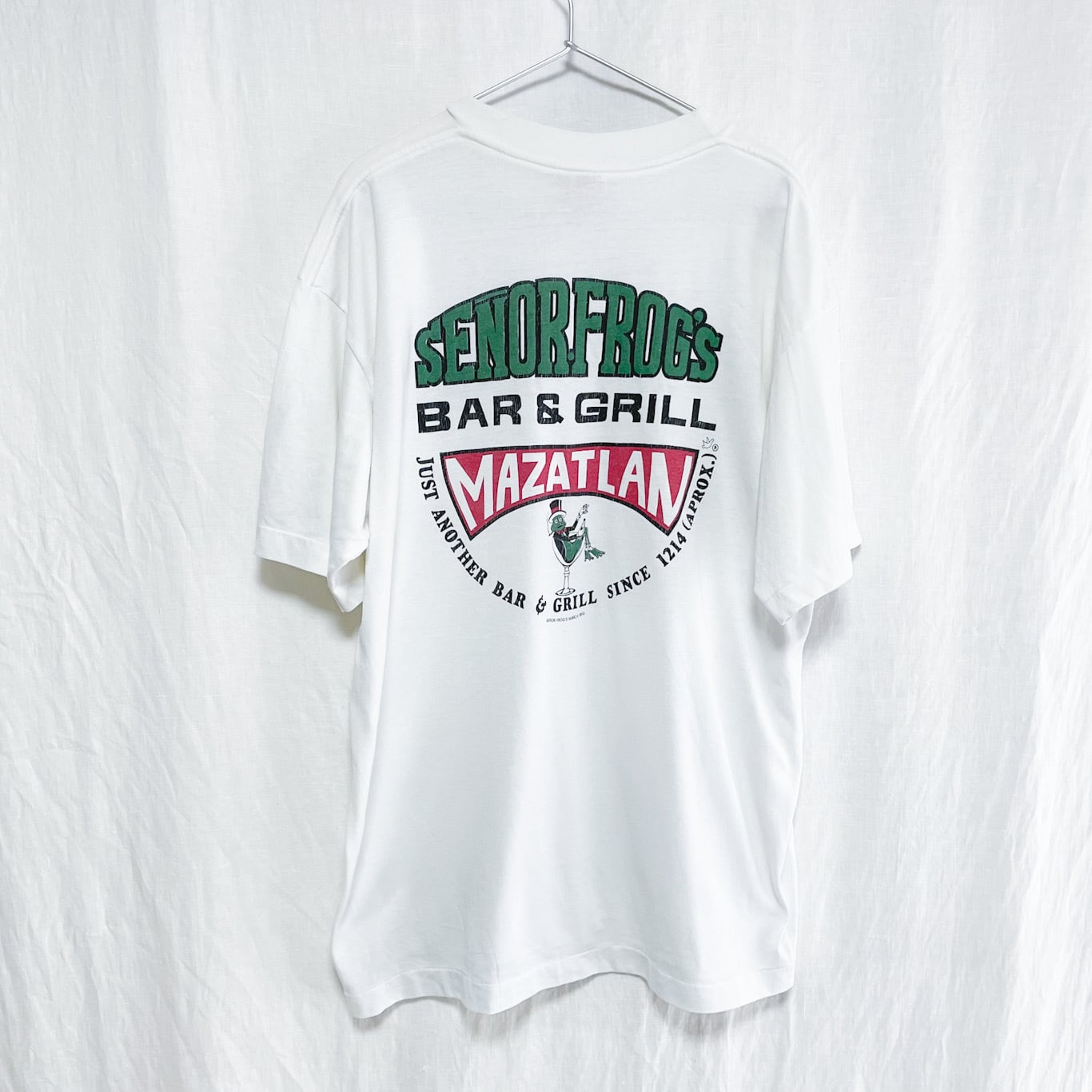 90s バー & グリル カエル ブロック Tシャツ L 両面プリント レストラン