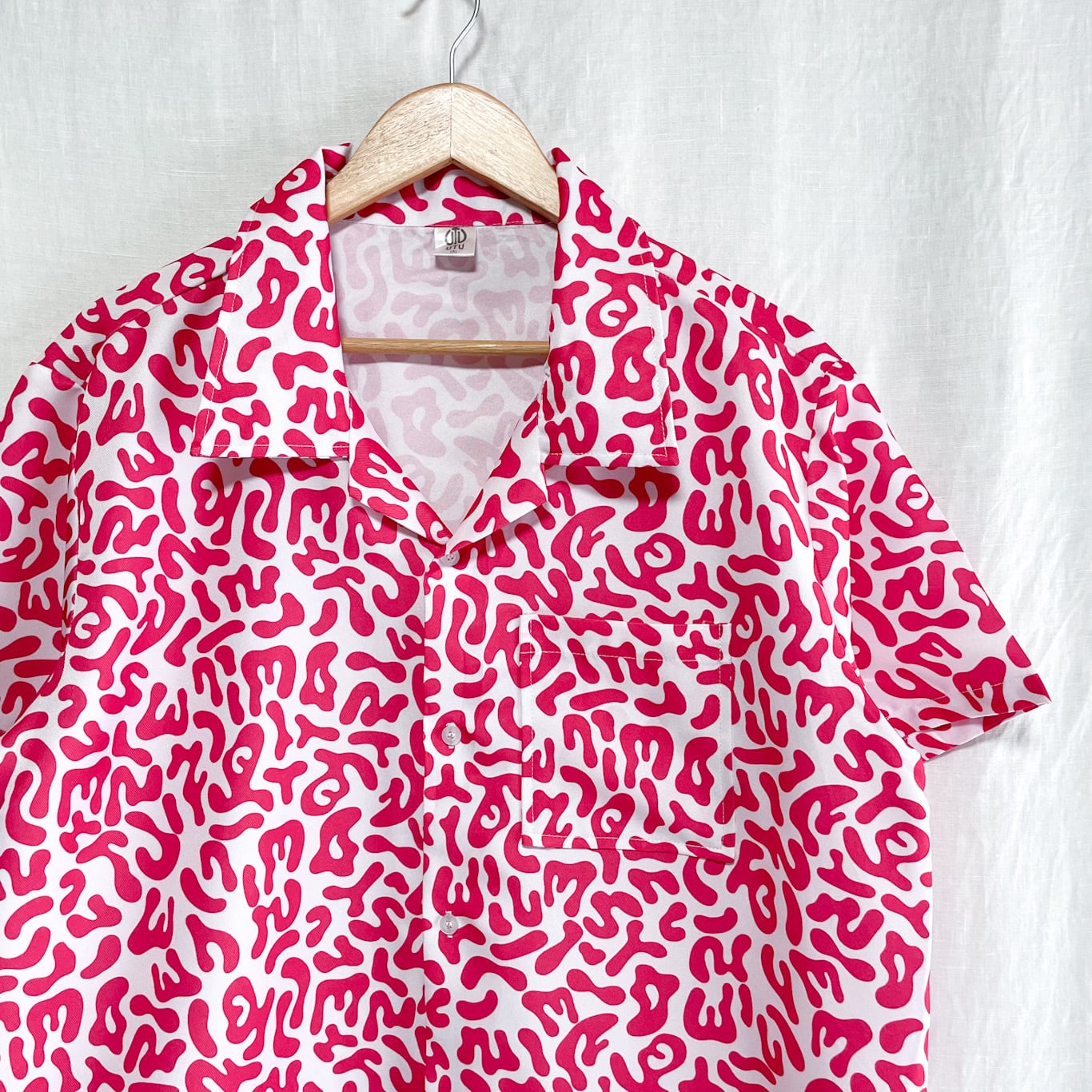 美品 90s 韓国軍 バクテリアカモ アメーバカモ 迷彩 カモフラ 半袖シャツ バクテリアカモ ピンク L~XL相当 アロハシャツ
