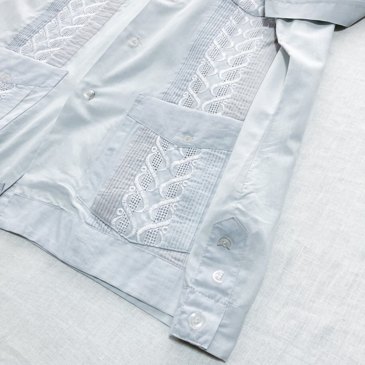 90s MEXICANA キューバシャツ ユーロ ヨーロッパ アメカジ 半袖シャツ L相当 ホワイト ブルー