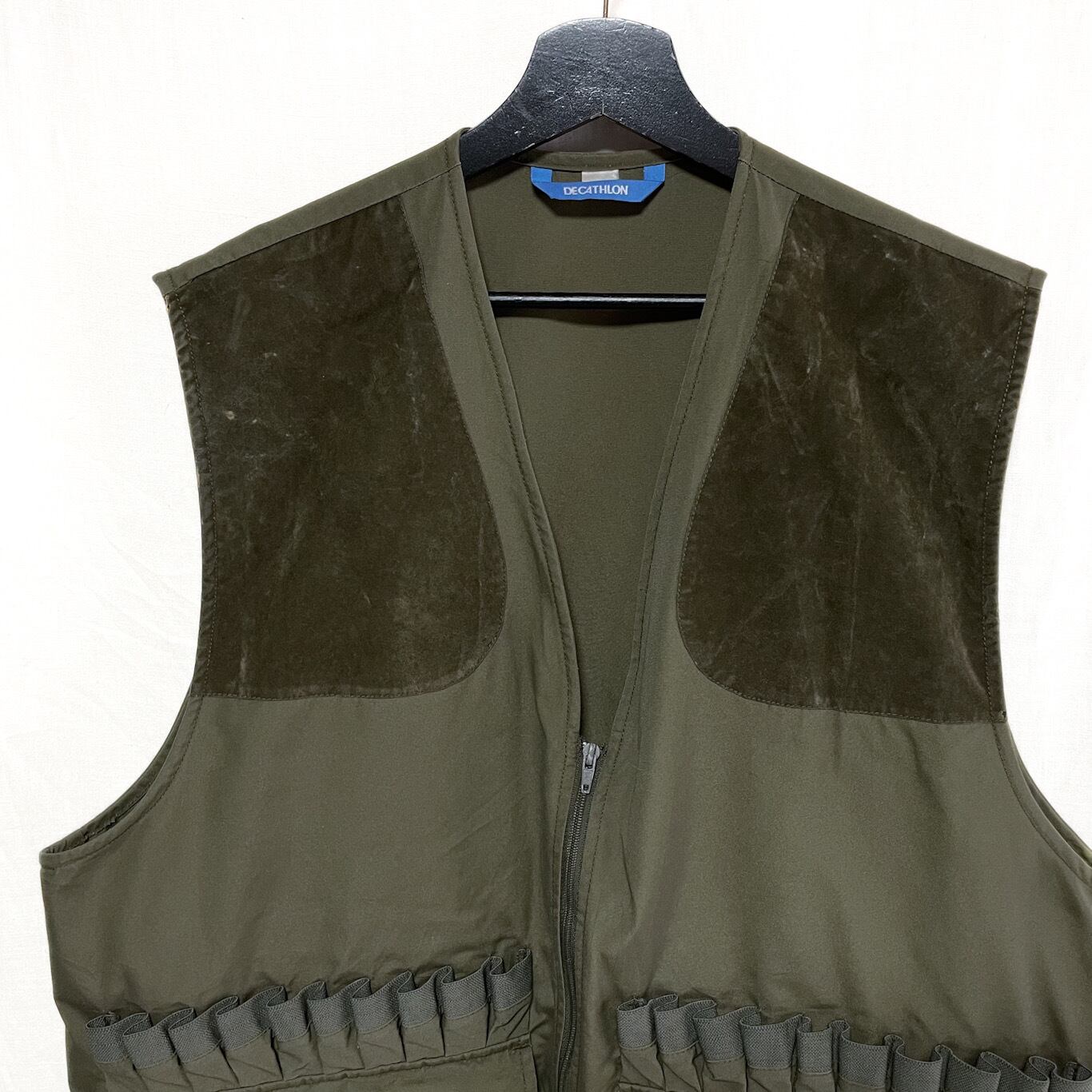 70s 80s フランス ヴィンテージ ハンティングベスト XL カーキ シューティング 狙撃 ユーロ ヨーロッパ