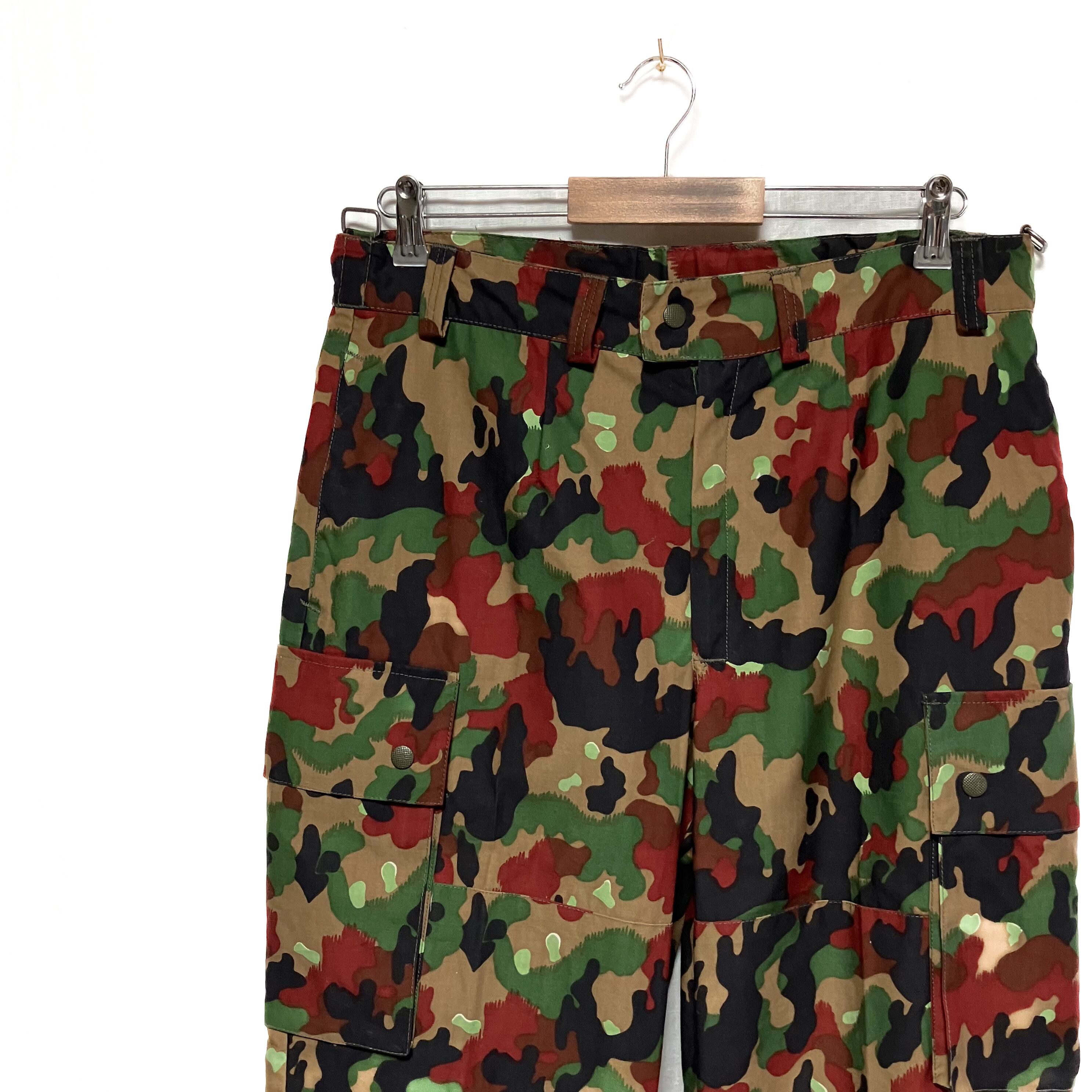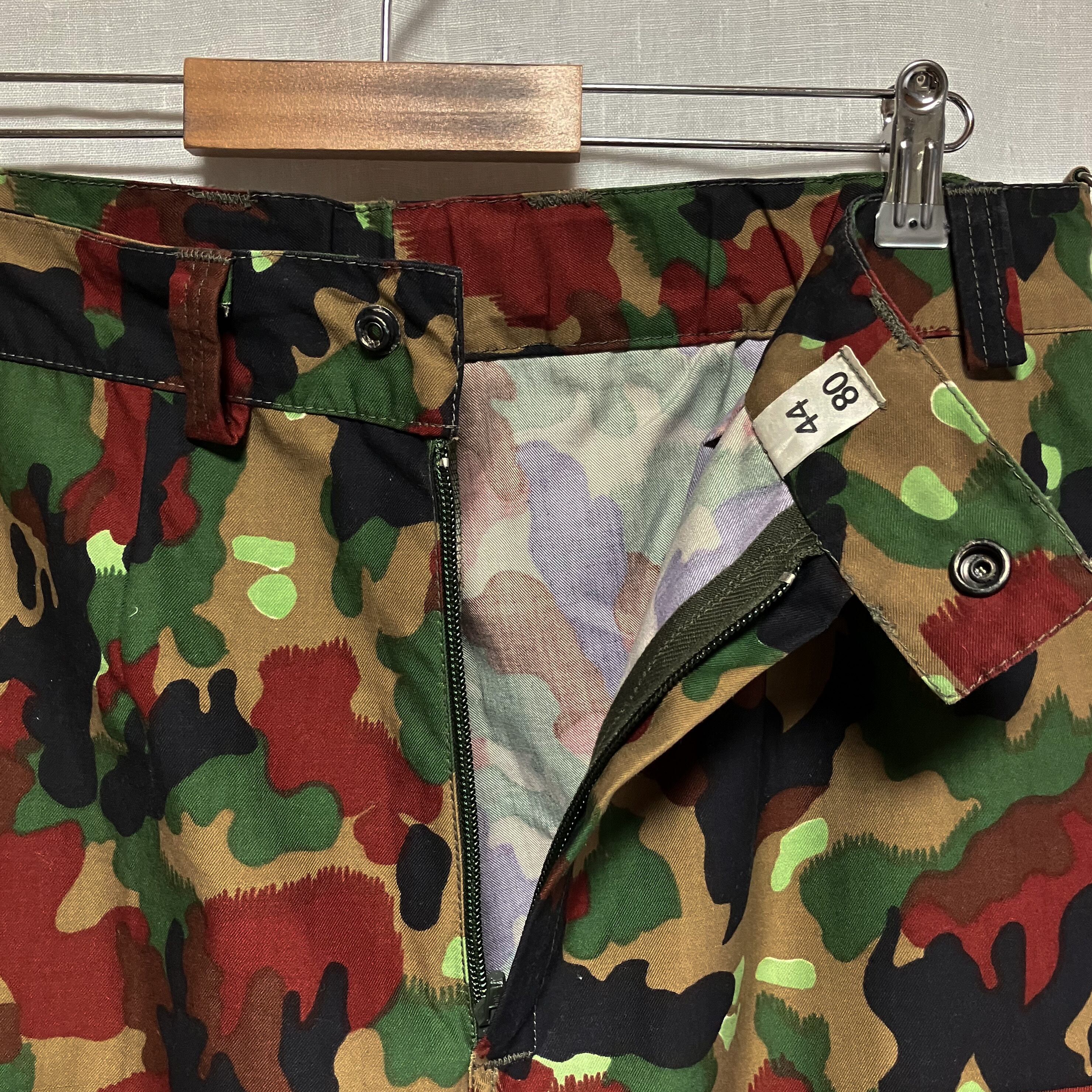 美品 スイス軍 アルペンカモ 迷彩 ジップアップ フィールド パンツ W35 ドイツ軍 フランス軍 ユーロ ヴィンテージ