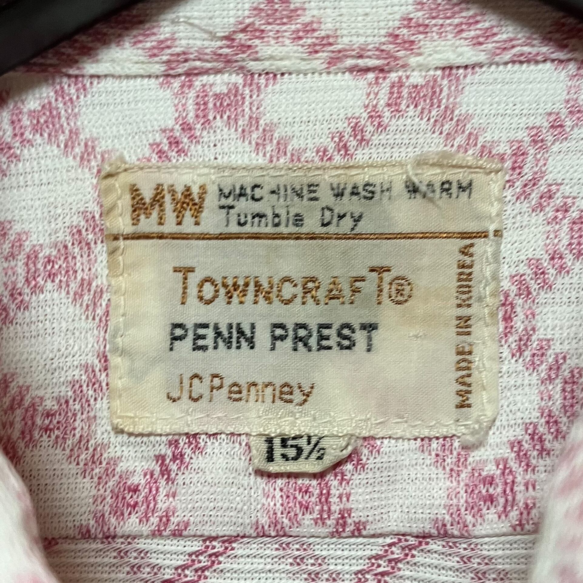 70s TOWNCRAFT PENN PREST Penney半袖 オープンカラー ポリ シャツ メンズ ユニセックス M ~L相当