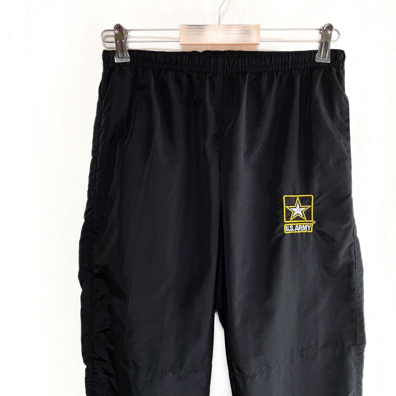 美品 US ARMY APFU 米軍 刺繍入り ナイロン トレーニングパンツ L-R ブラック ミリタリー ジャージ トラックパンツ