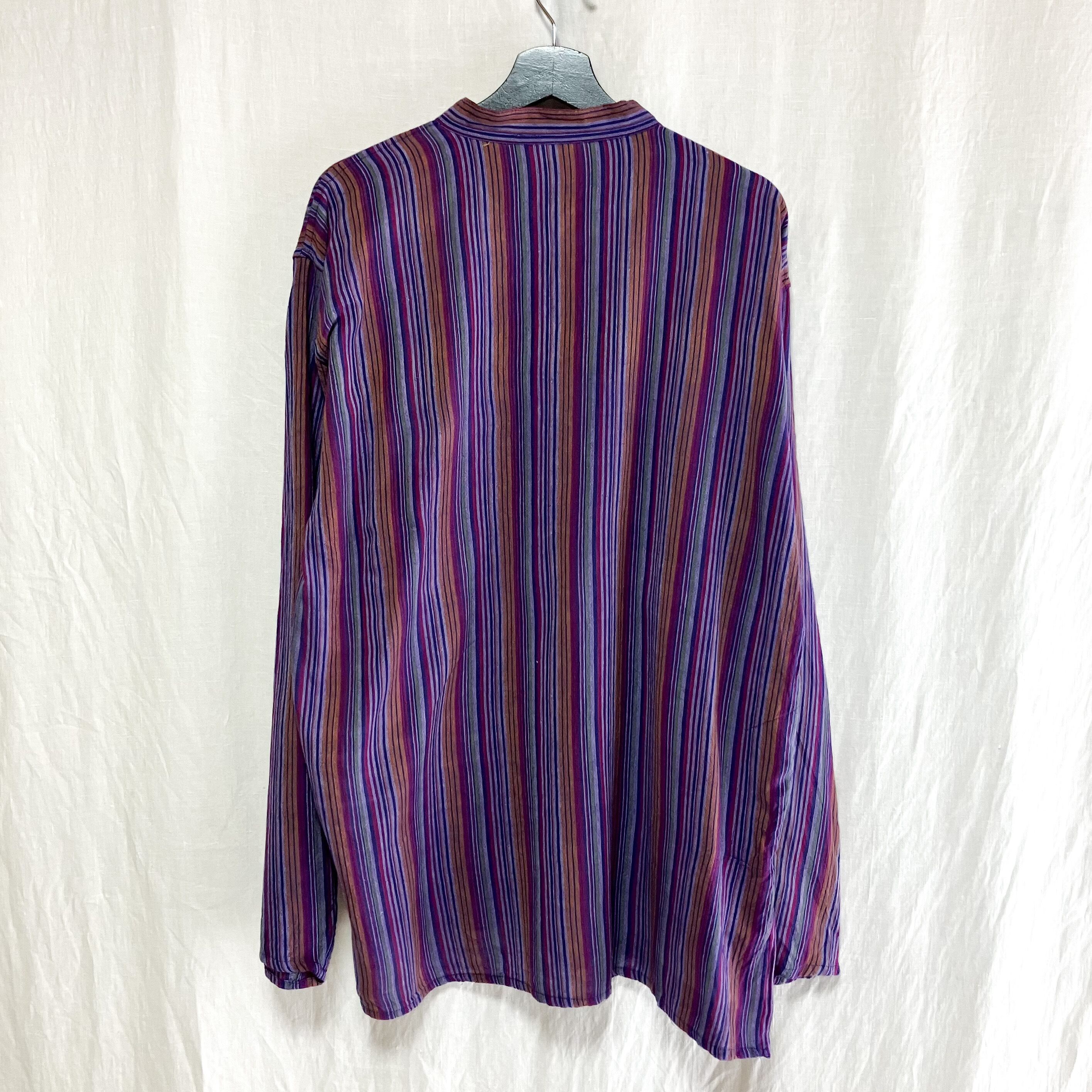 80s 90s ストライプ ネパールシャツ XXL相当 ヨーロッパ アメカジ 長袖 シャツ