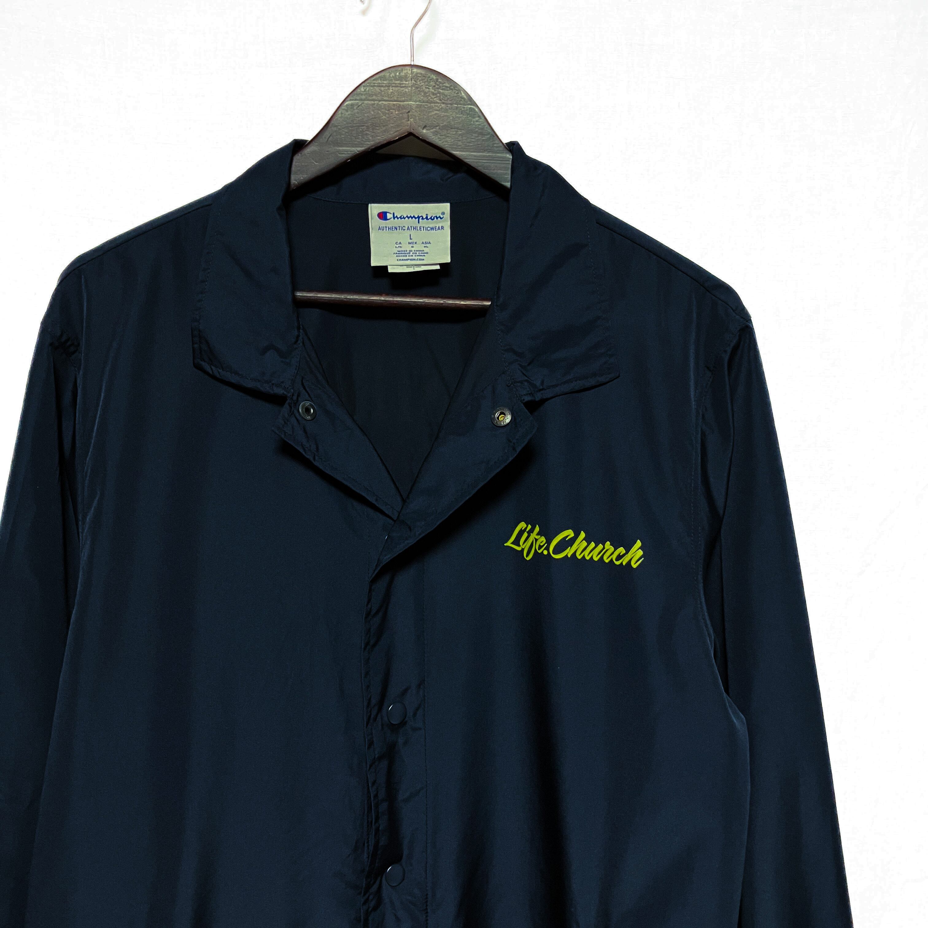 美品 Champion チャンピオン ATHLETICWEAR コーチジャケット 胸ロゴ 両面プリント アスレチックウェア L