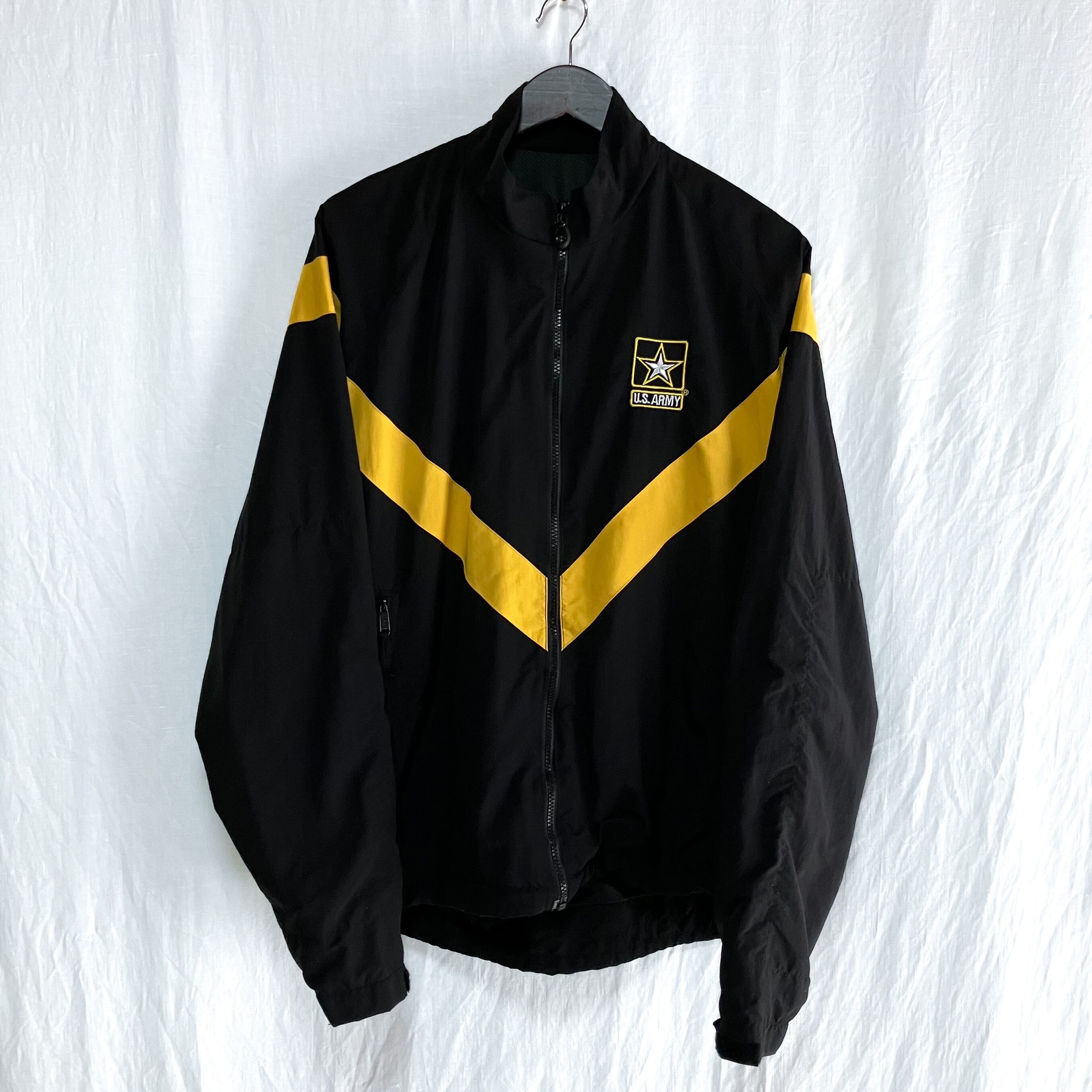 U.S.ARMY 米軍 実用 ナイロン トレーニングジャケット M-L 裏地メッシュ ブラック x イエロー ブルゾン