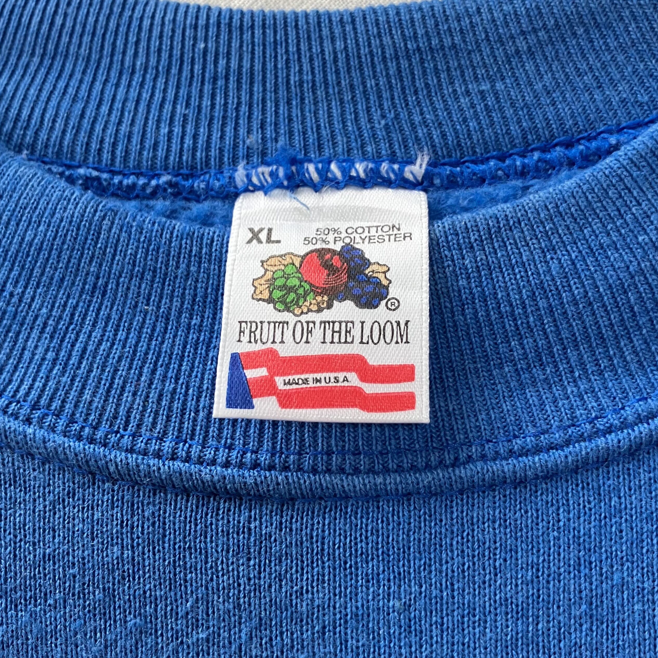 90s USA製 FRUIT OF THE LOOM プリント スウェット シャツ フルーツオブザルーム ブルー XL