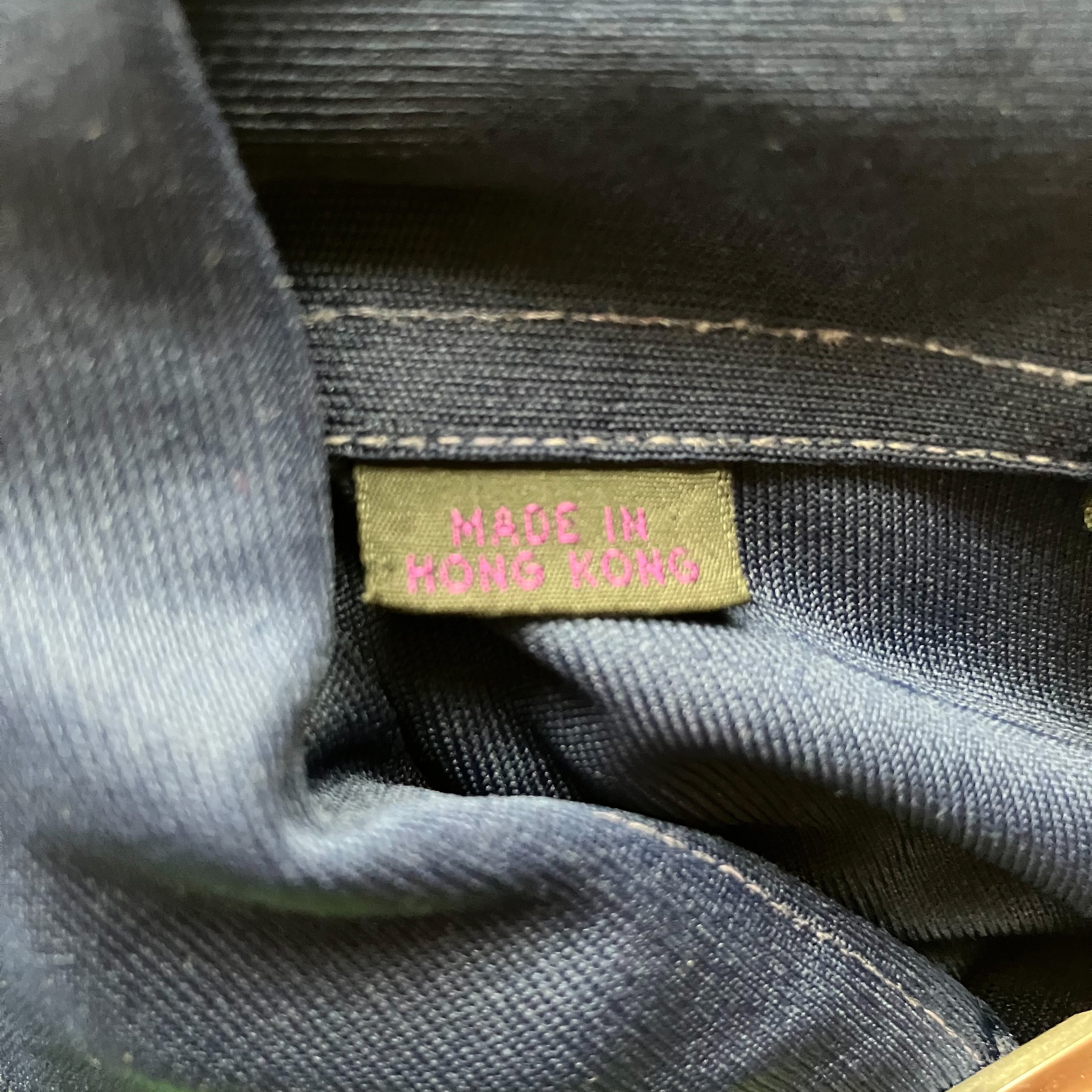 70s ポリエステル 長袖シャツ ネイビー 開襟 古着 ヴィンテージ ビンテージ ポリシャツ メンズ M