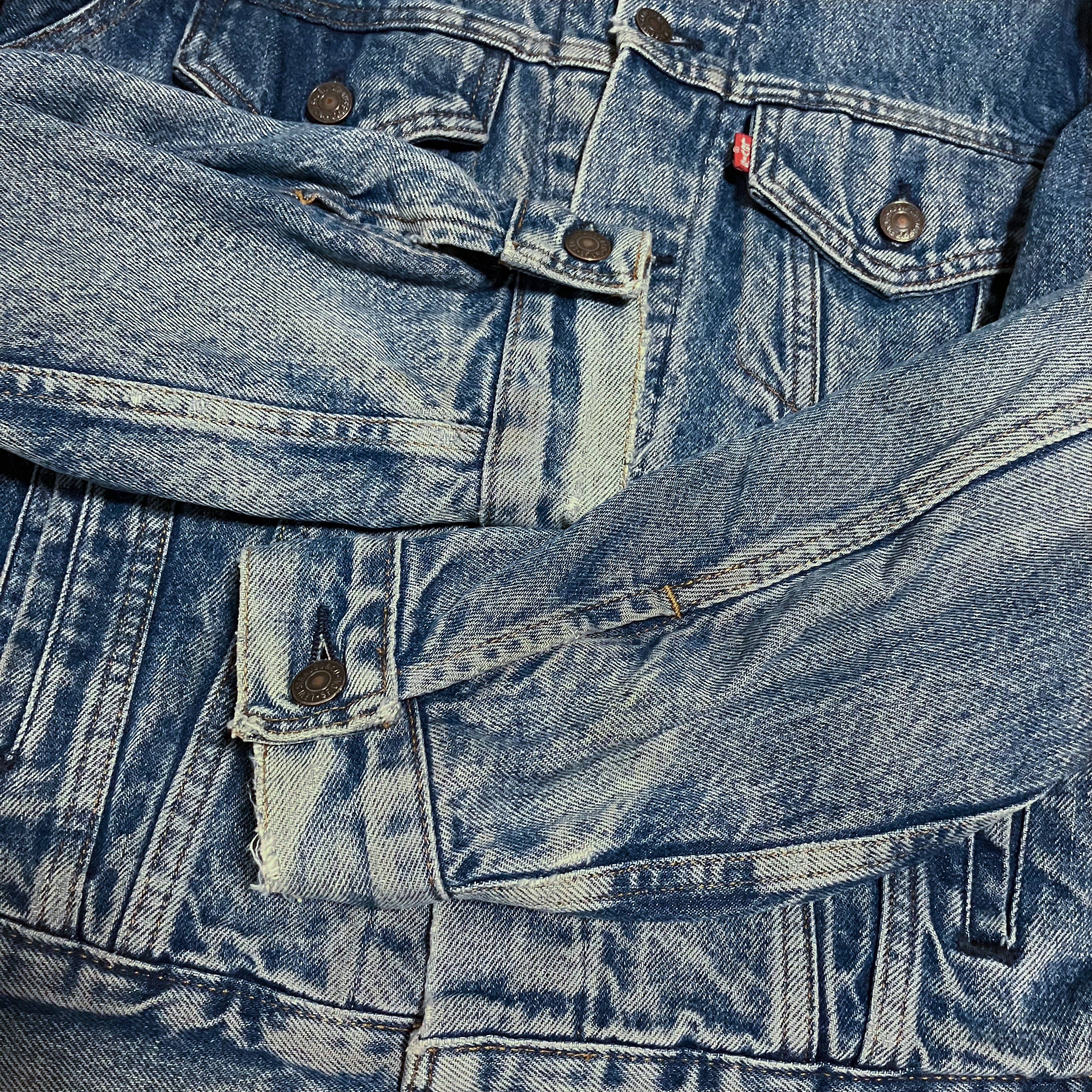 雰囲気◎ 80s USA製 Levi's リーバイス デニム ジャケット 70411 0816 裏地 チェックジーンズ Gジャン
