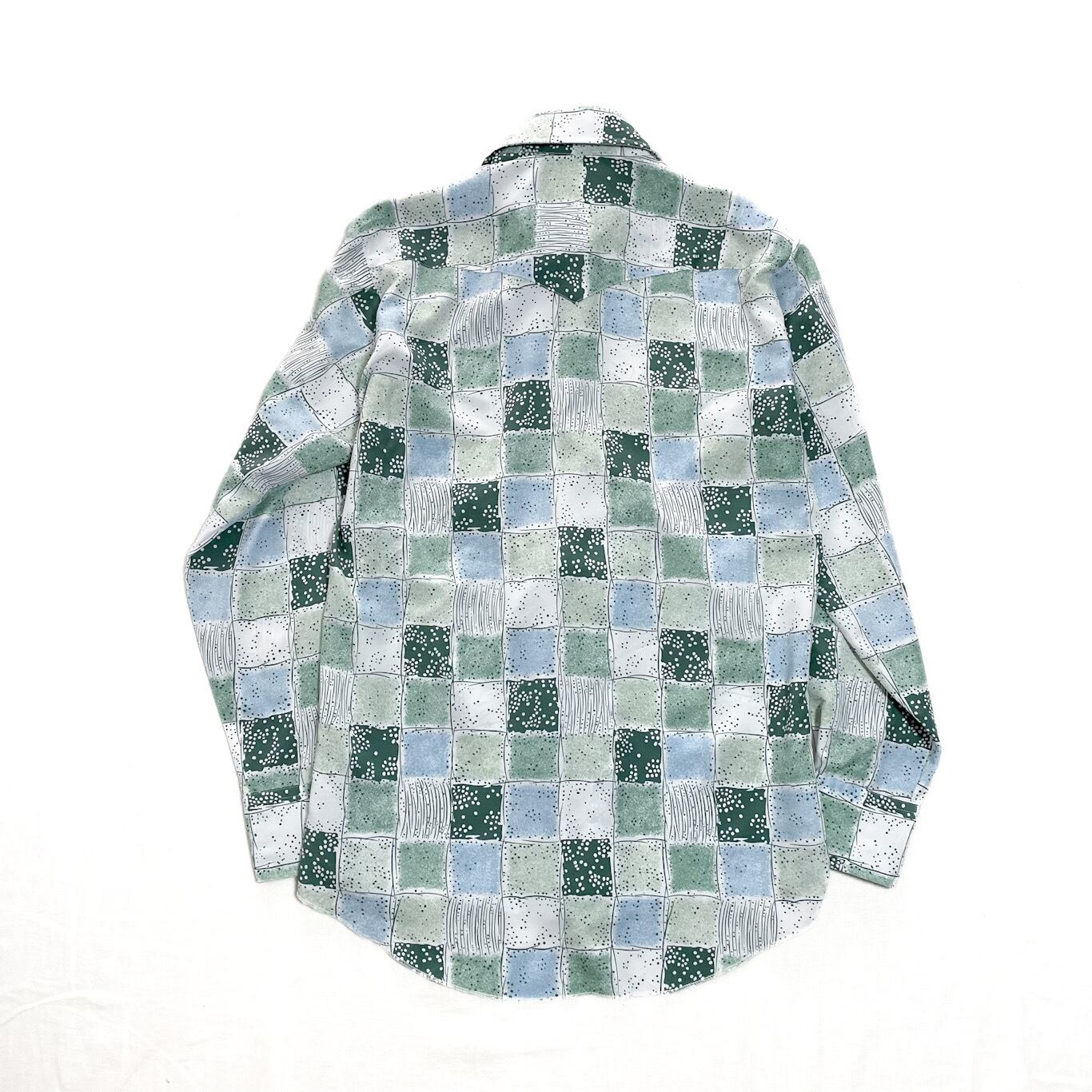 80s H BAR C 薄手 ウエスタンシャツ XL相当 ロングテール 総柄 チェック BAR-M RANCHER ポリシャツ ポリエステルシャツ