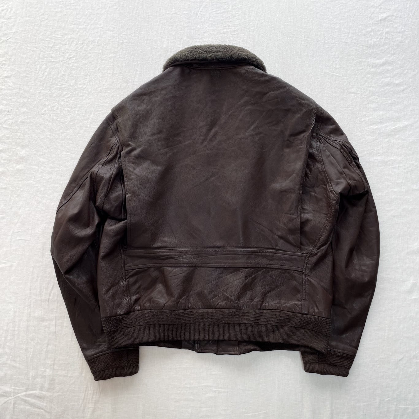 【Condition】レザーに若干の白い汚れ、左ハンドポケット上部にワッペン取り外し跡、リブに折り返し、ややダメージ、襟ボアに経年による変色がございますが良い雰囲気です。ダメージはなくこれからも末永くご愛用いただけます。