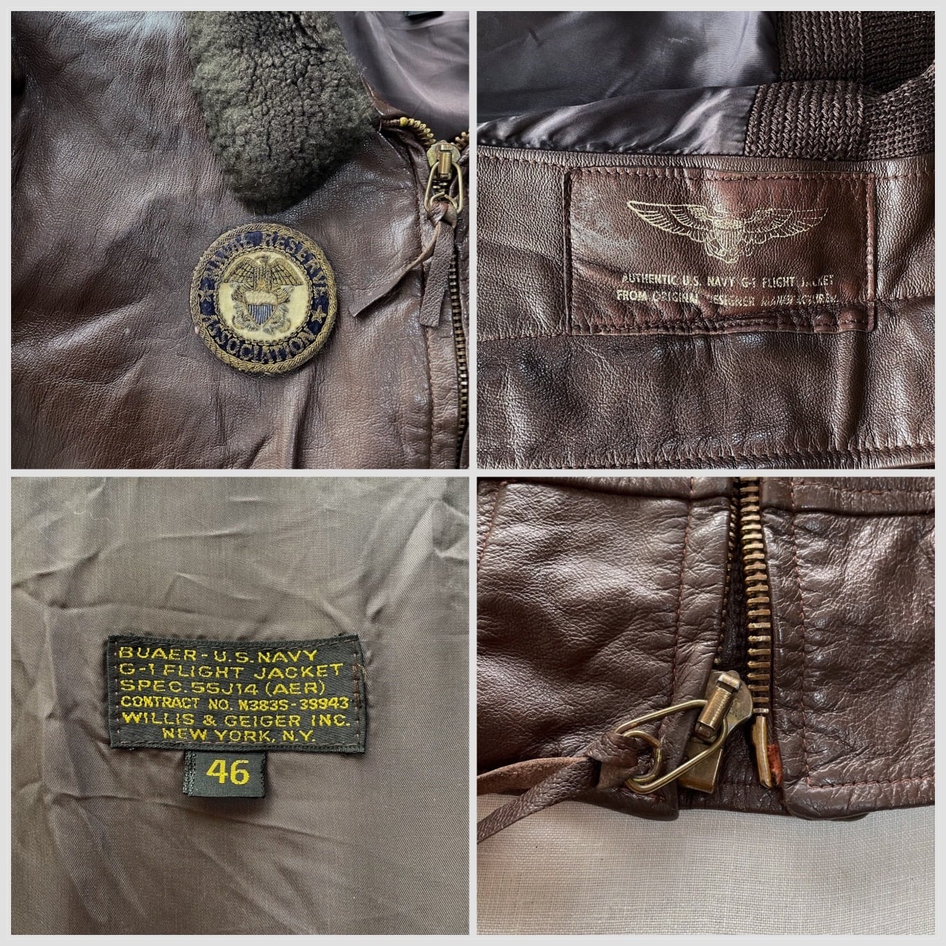 Willis & Geiger 55J14 G-1 フライトジャケット 46 米軍 ウィリス ガイガー ゴートスキン