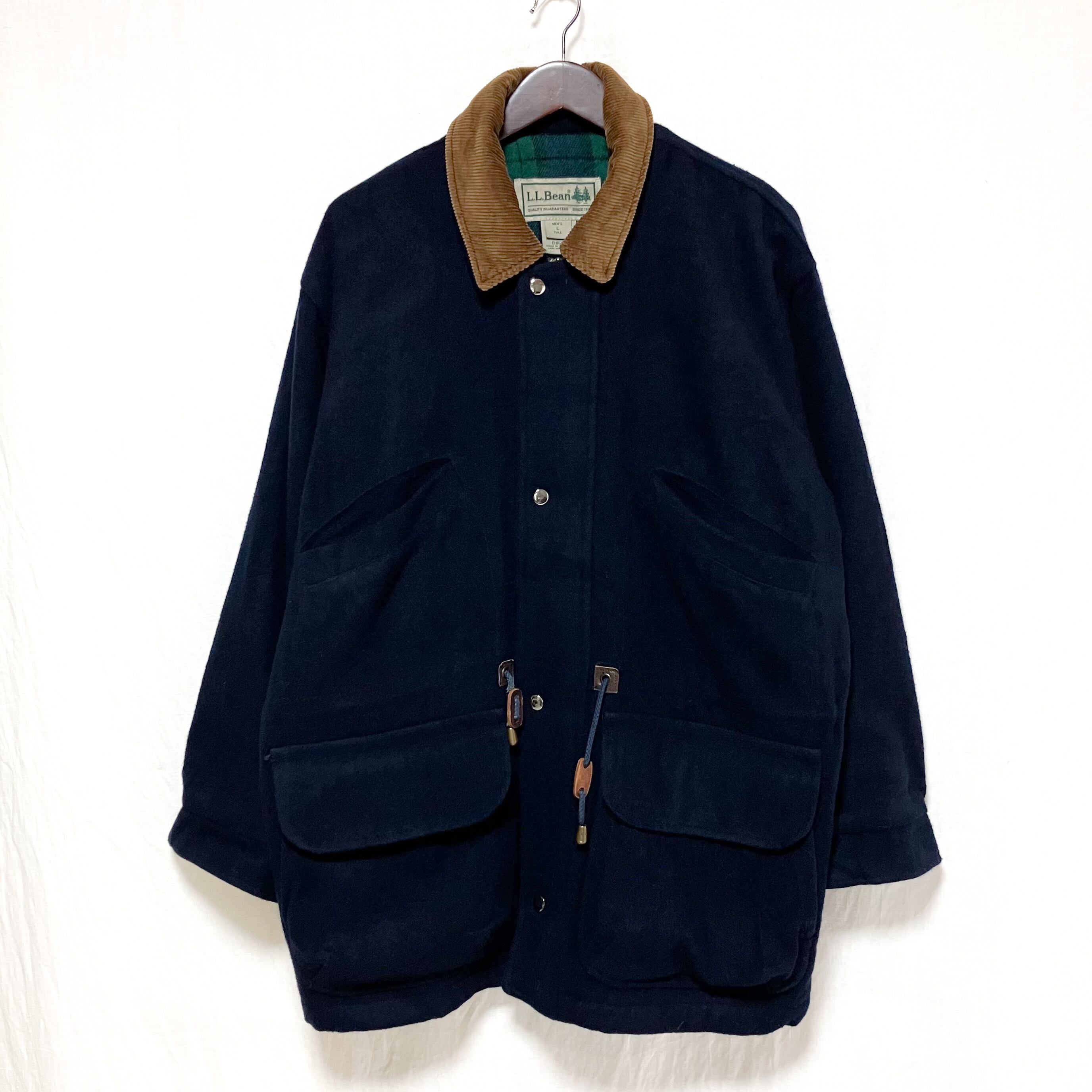 希少 LLBEAN エルエルビーン 裏地チェック柄 襟首コーデュロイ コート Pコート L ジャケット