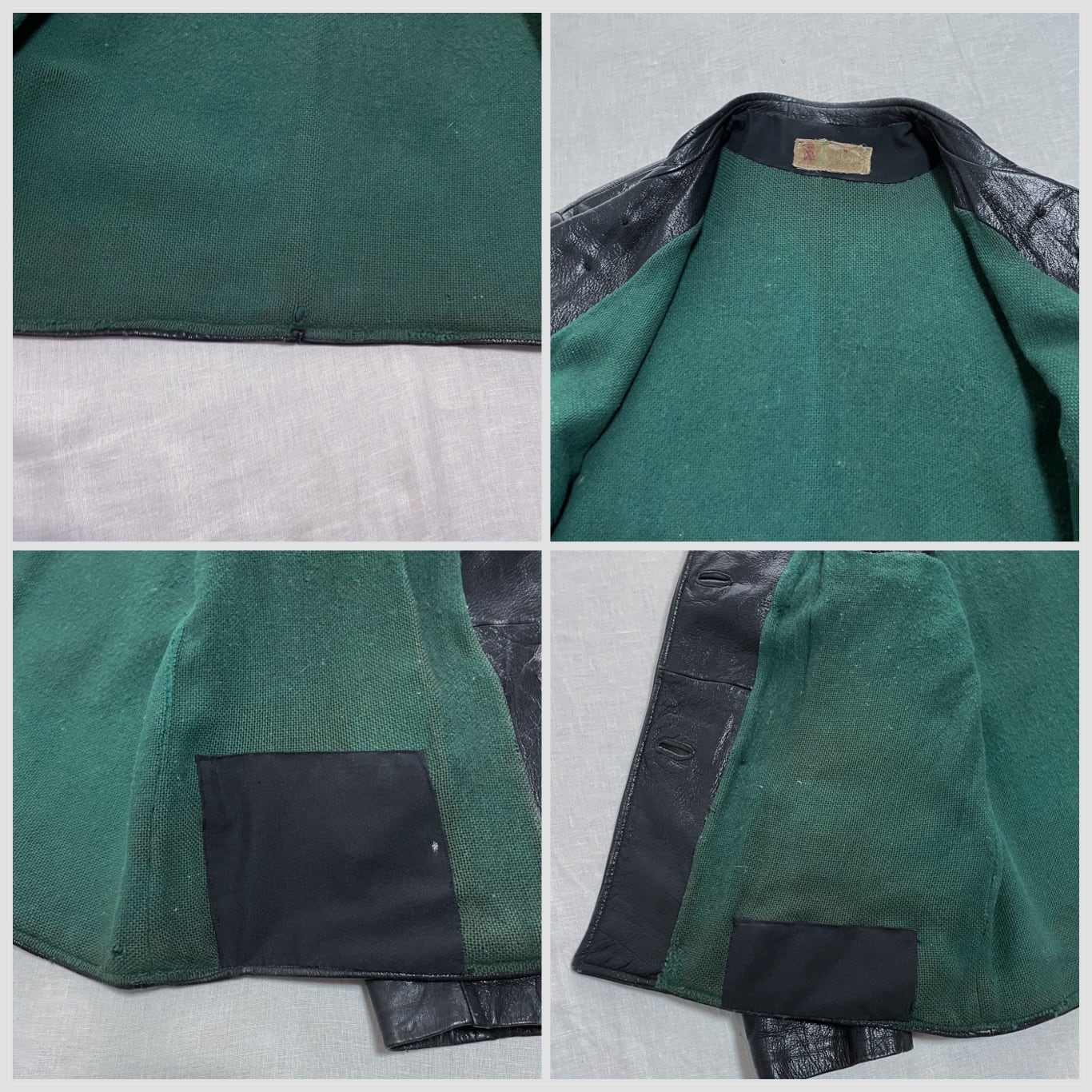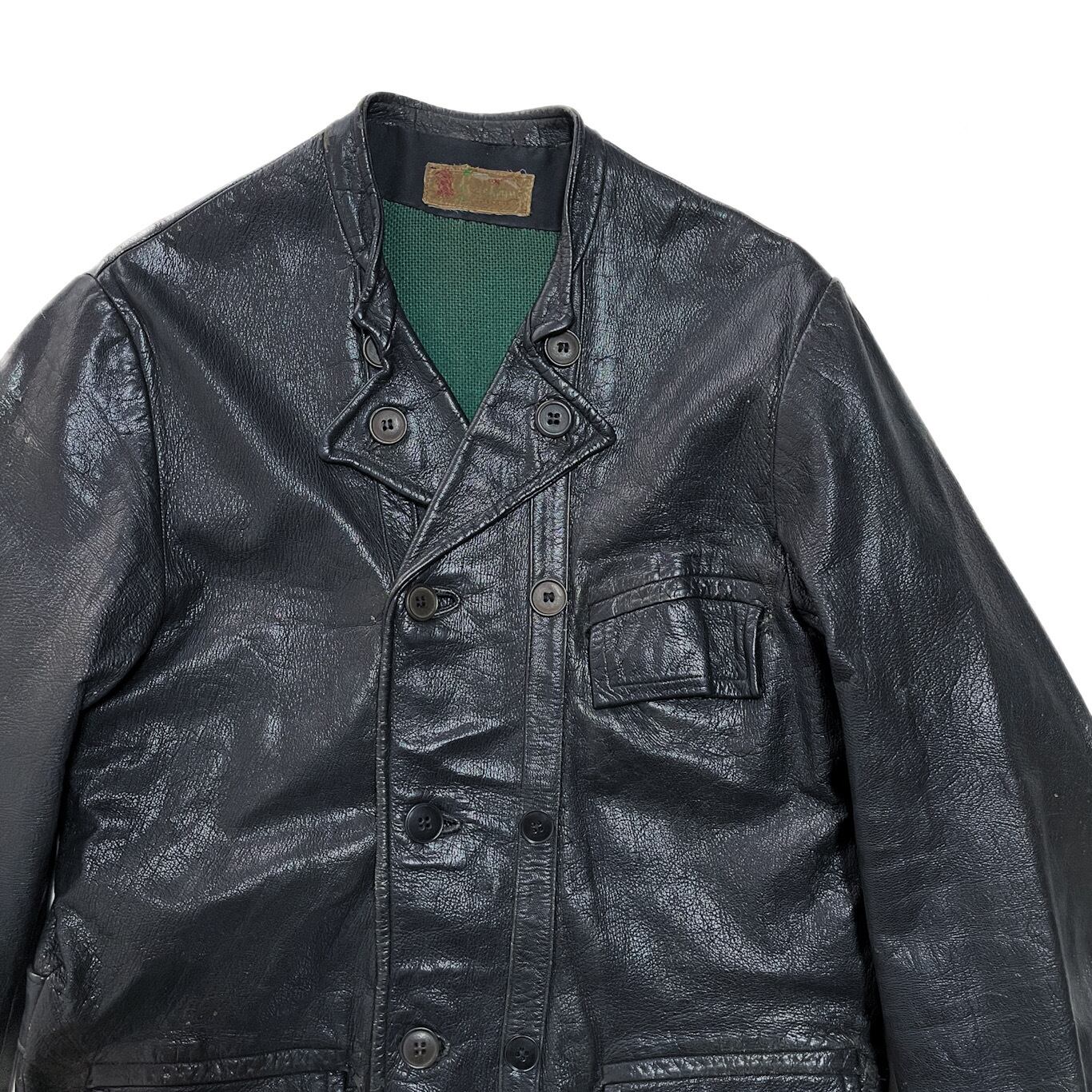 40s ユーロ ヴィンテージ ダブルブレスト レザー カーコート M相当 スウェーデン フランス イギリス RAF 30s40s コルビジェ