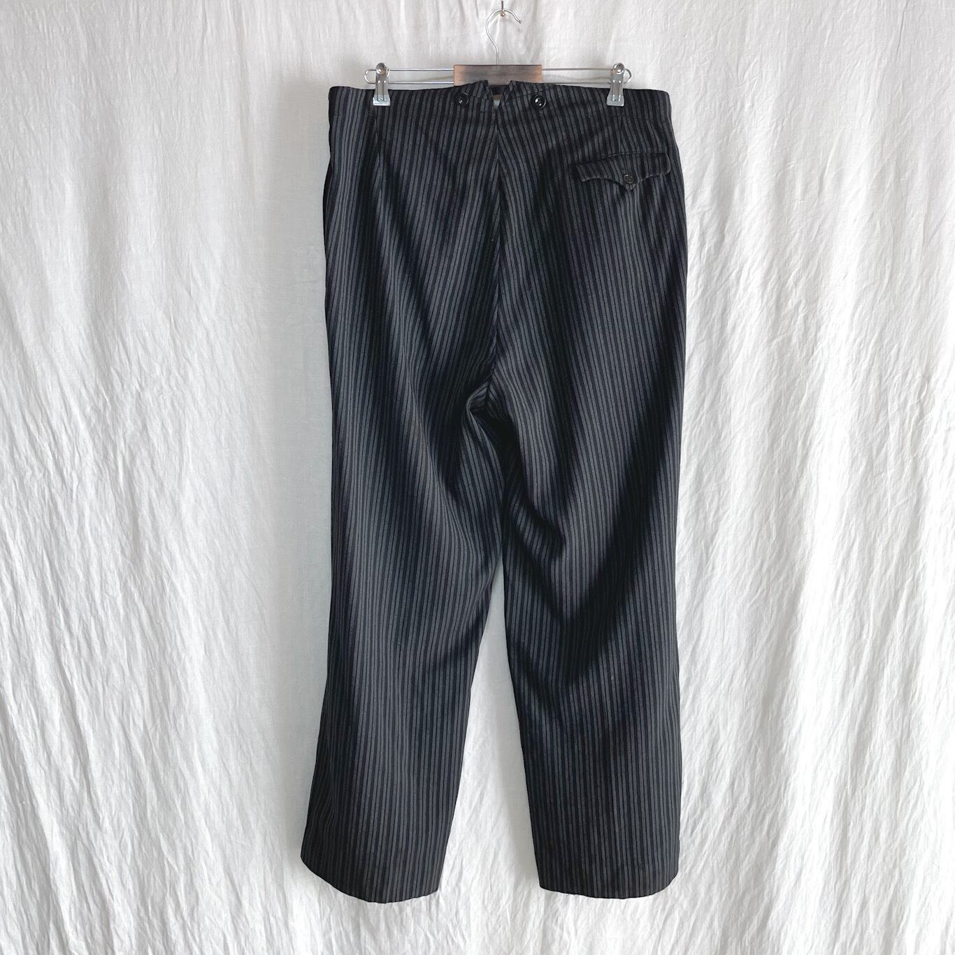 40s ユーロ ヴィンテージ ブラック ストライプ スラックスパンツ W36 フランス フレンチ アンティーク